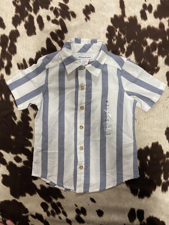 Pre-Loved Tommy Bahama Blue/White Striped Shirt *Youth XS (4)