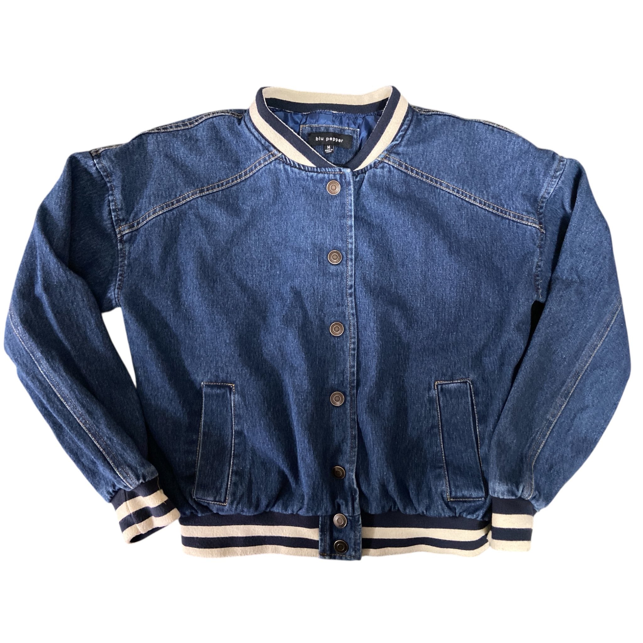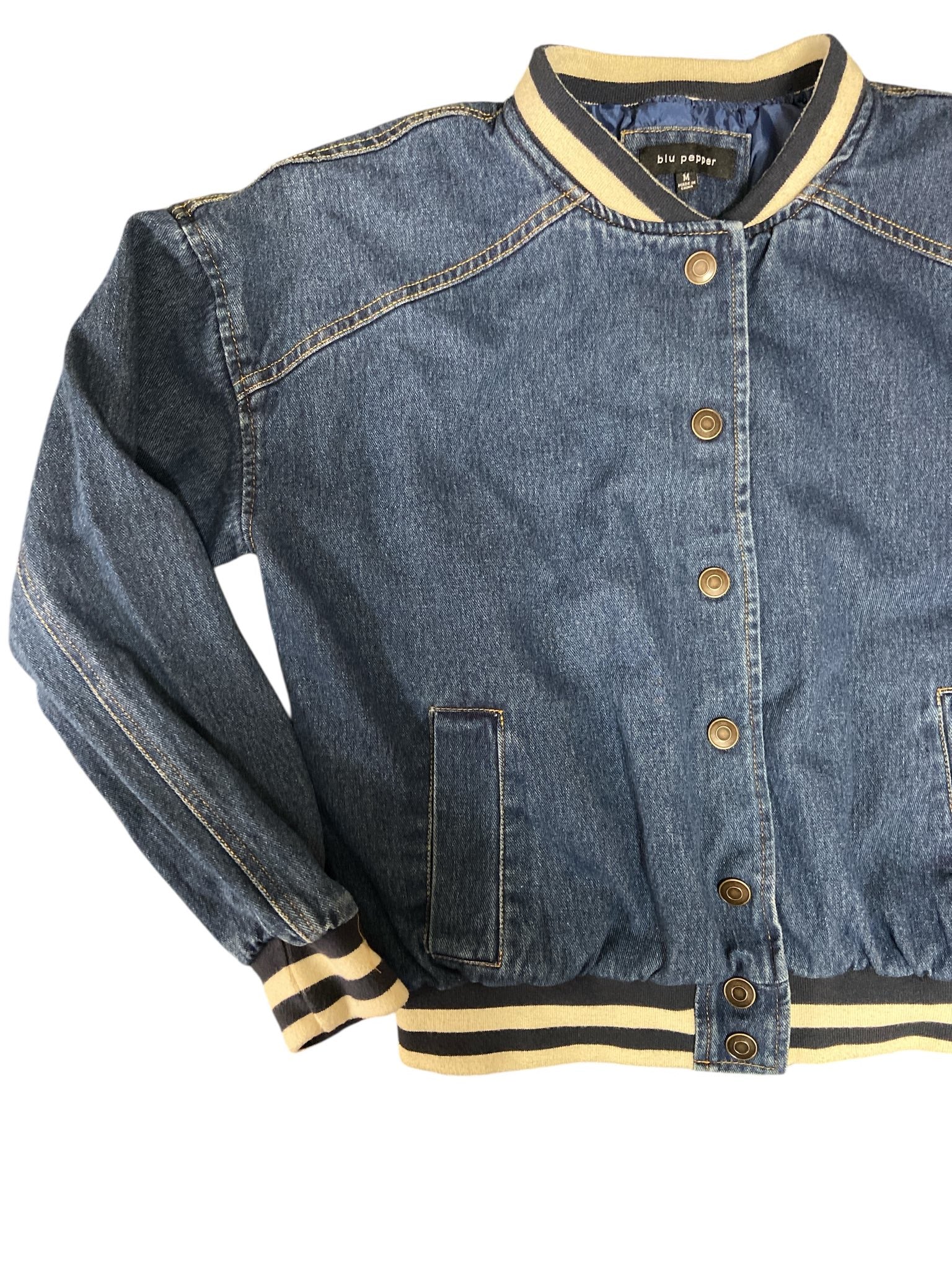 Varsity style jean jacket