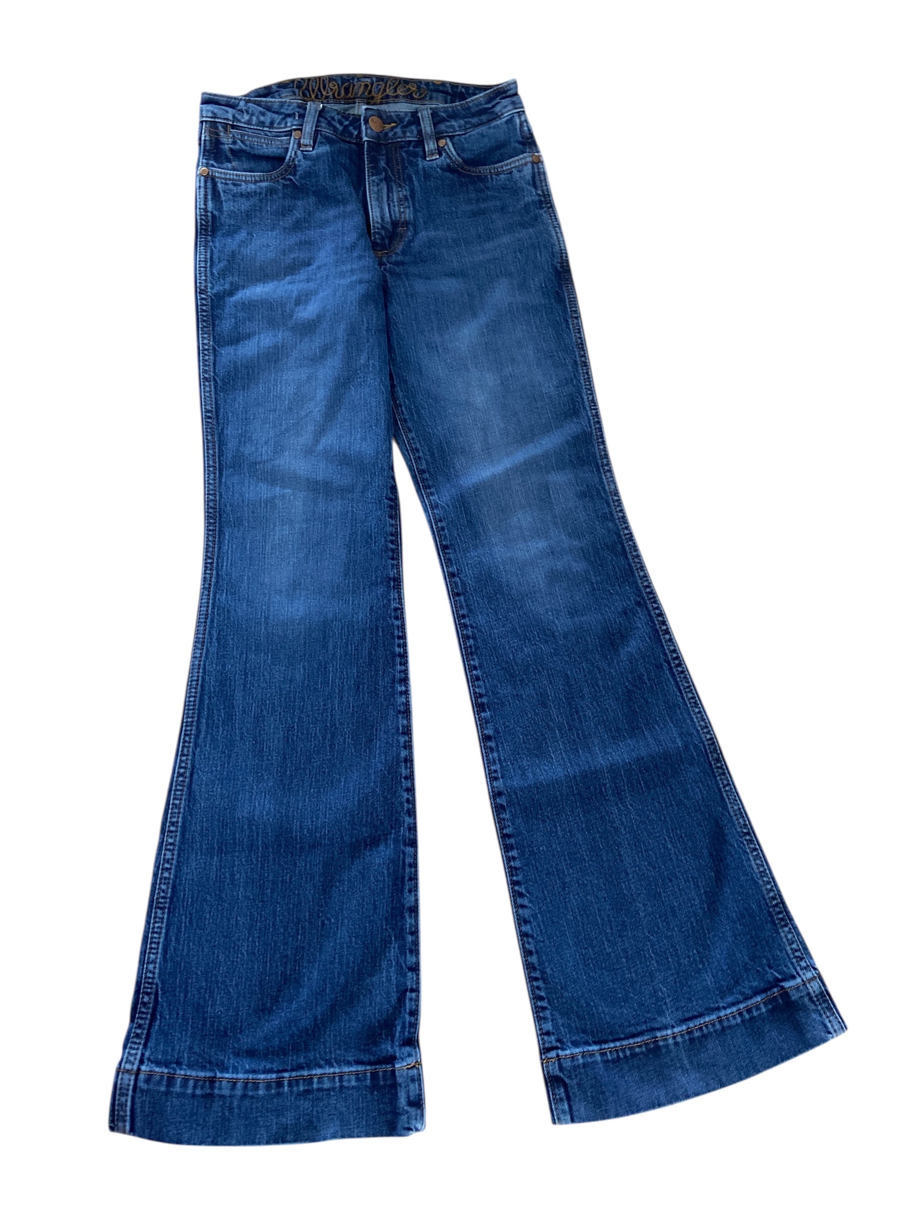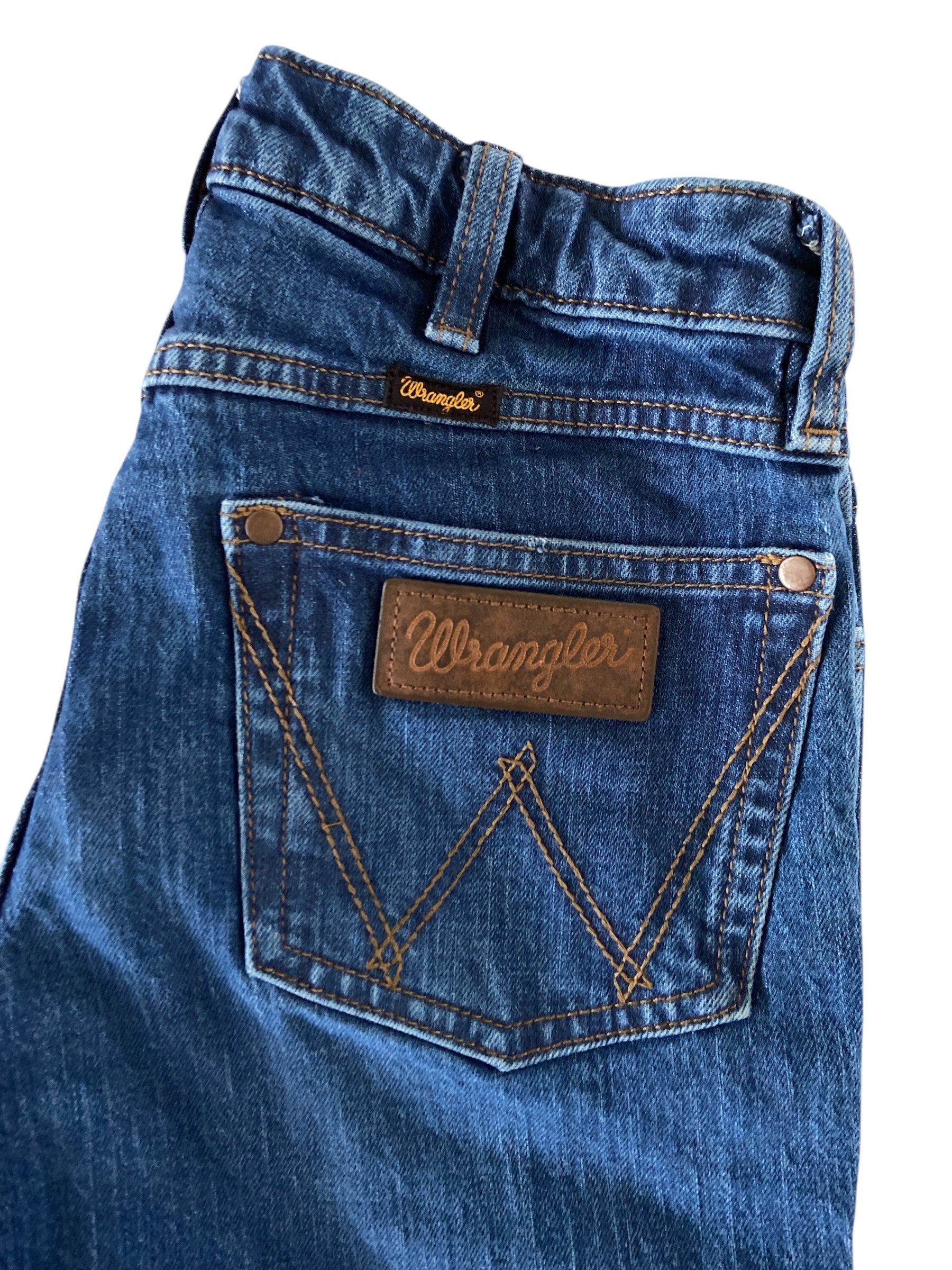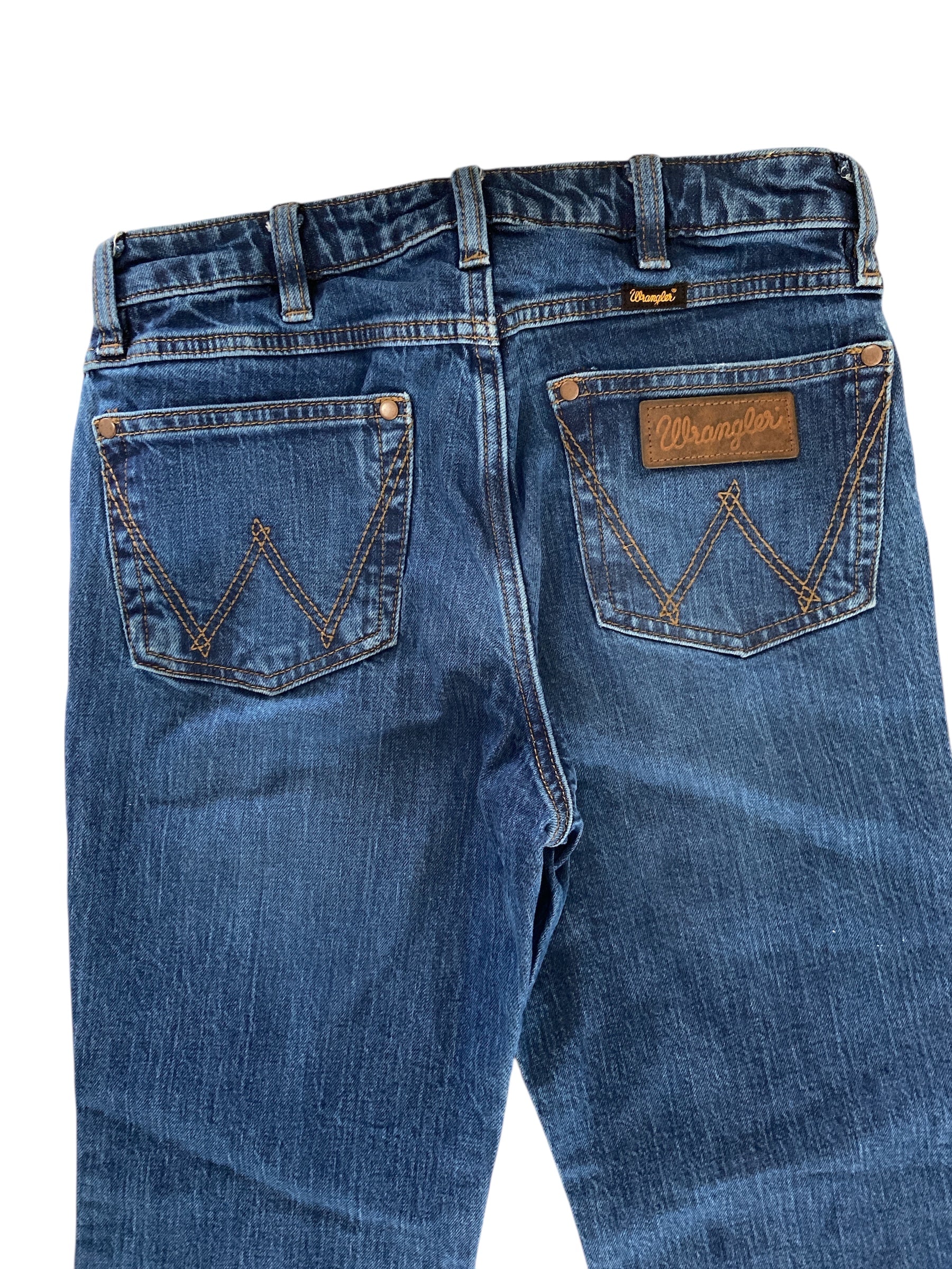 Score a genuine Wrangler find—trouser jeans that know how to fit. 27" waist and 32" inseam. These aren't trying to be anything they're not; they're honest denim with Wrangler's legendary backbone built right in. Throw them on with boots or sneakers and watch them become your go-to. These jeans are in very very good condition.