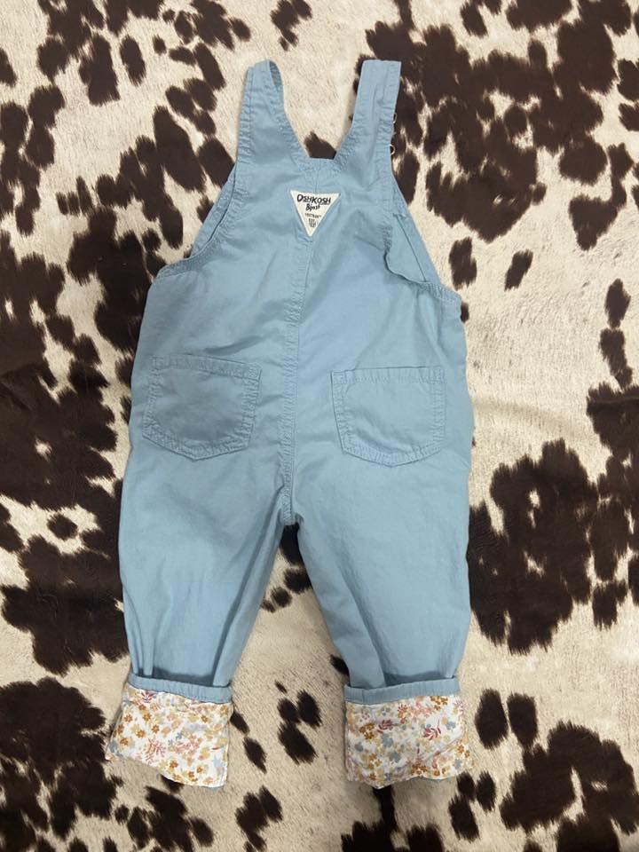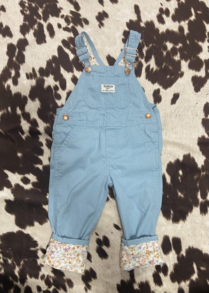 Pre-Loved Oshkosh B' Gosh Light Pastel Blue + Floral Overalls *2T
