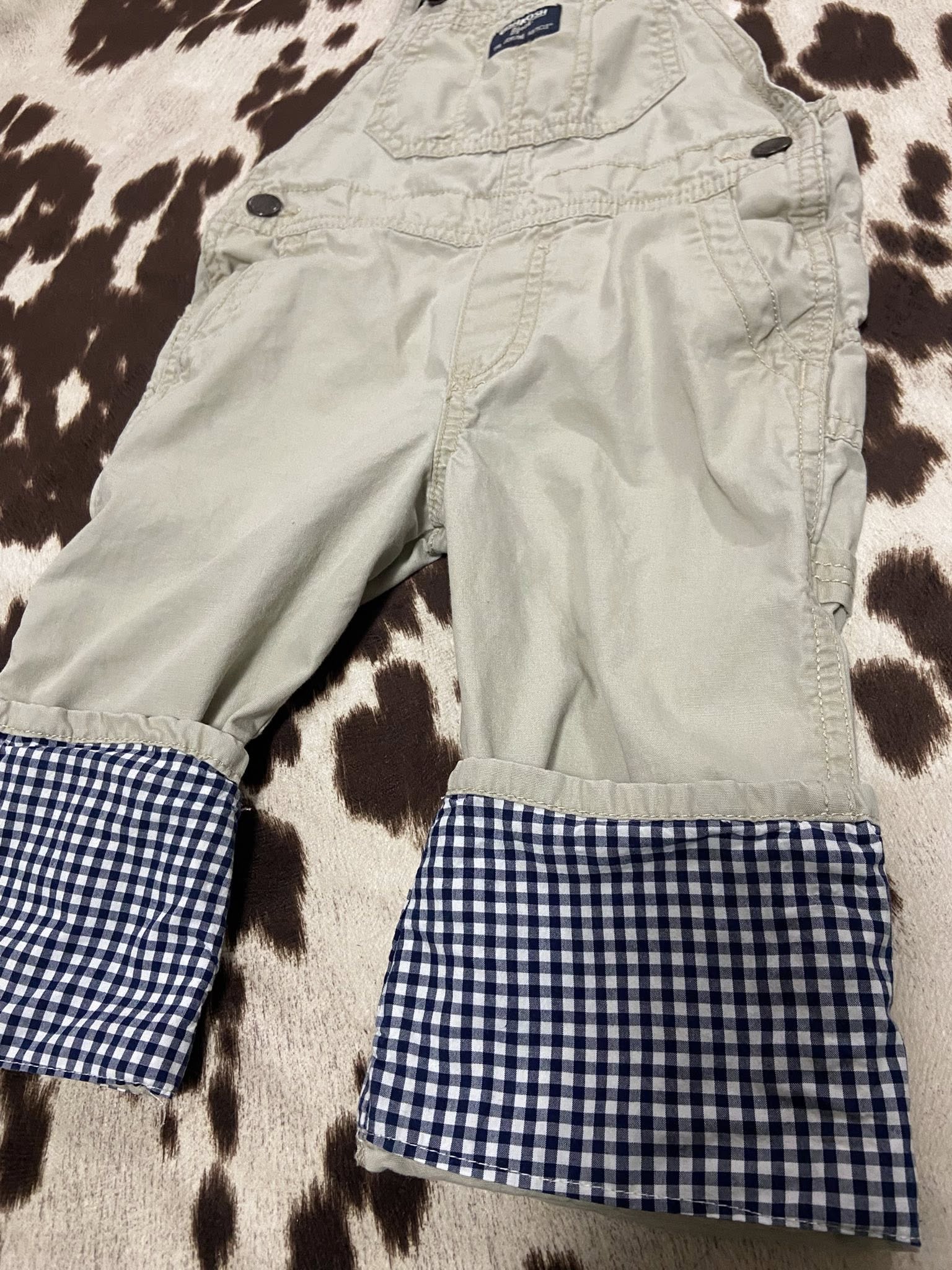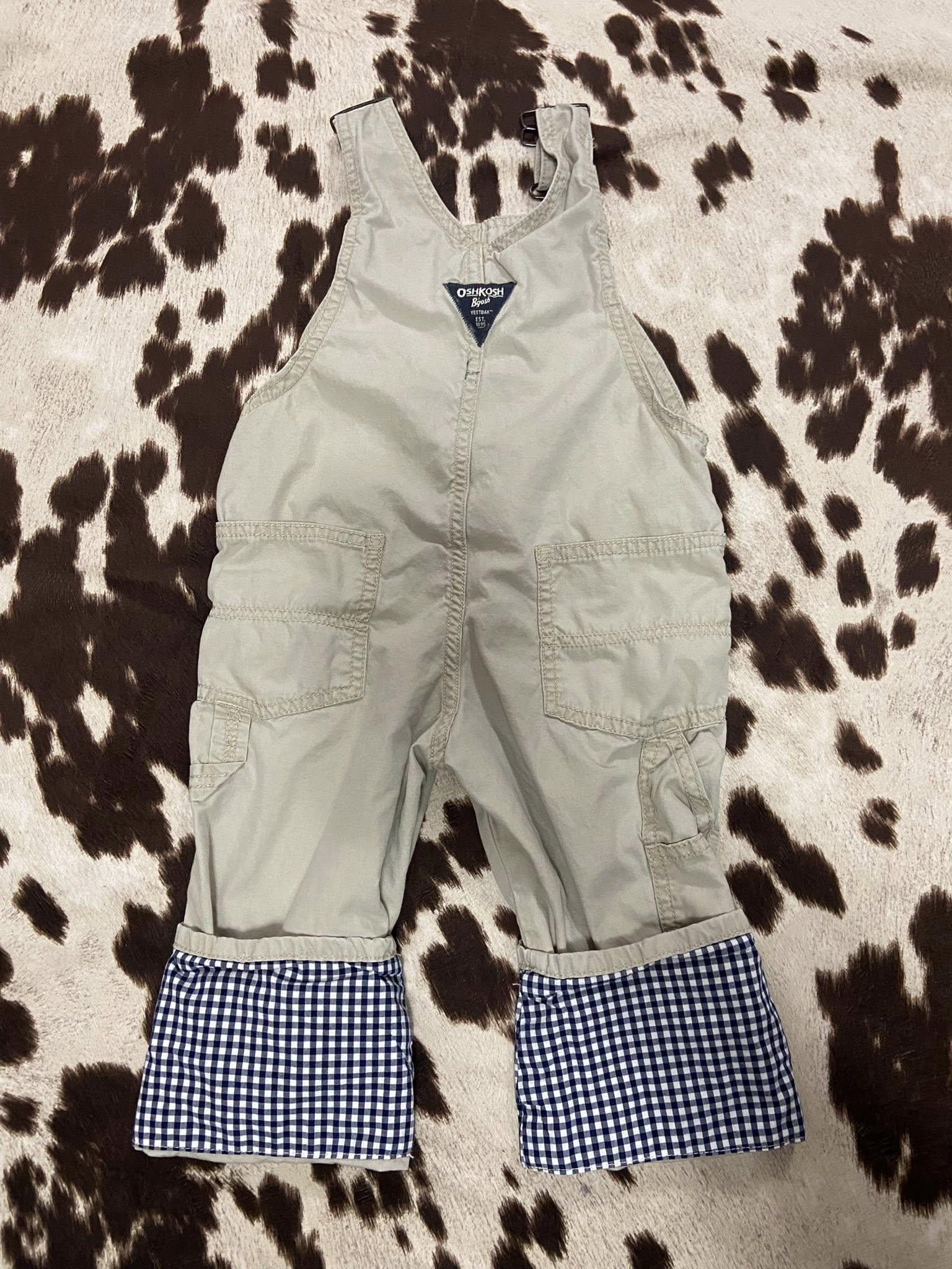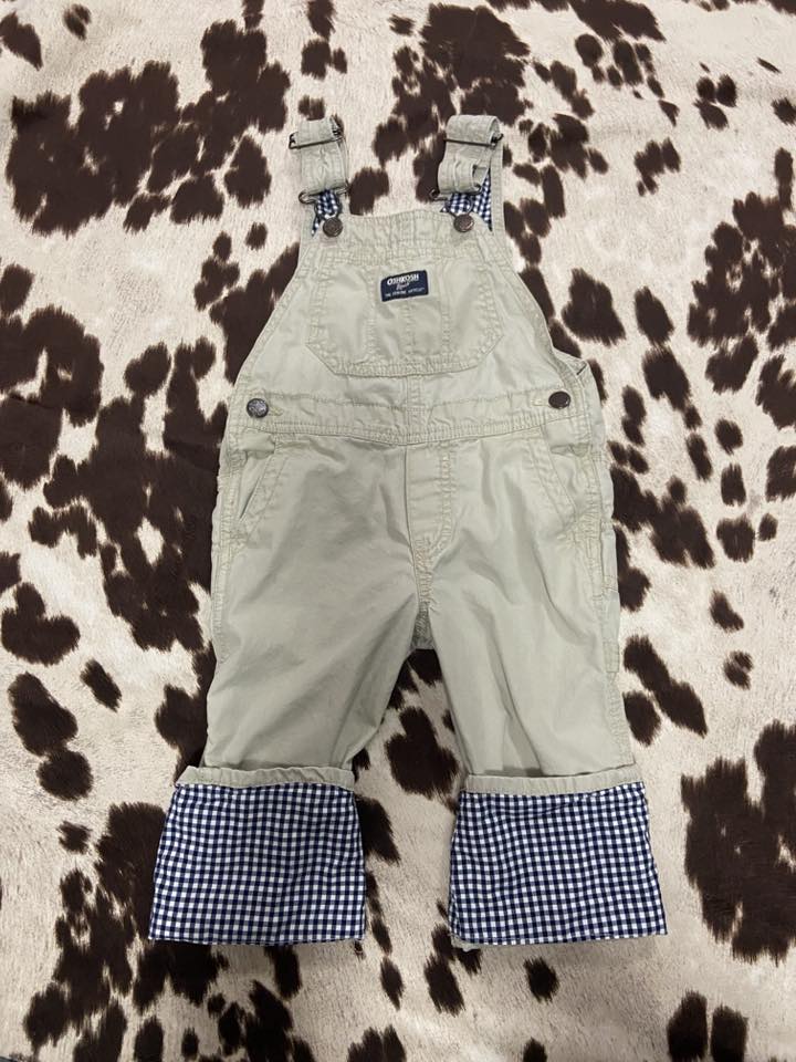 Pre-Loved OshKosh B'Gosh Light Tan With Gingham Overalls *3T