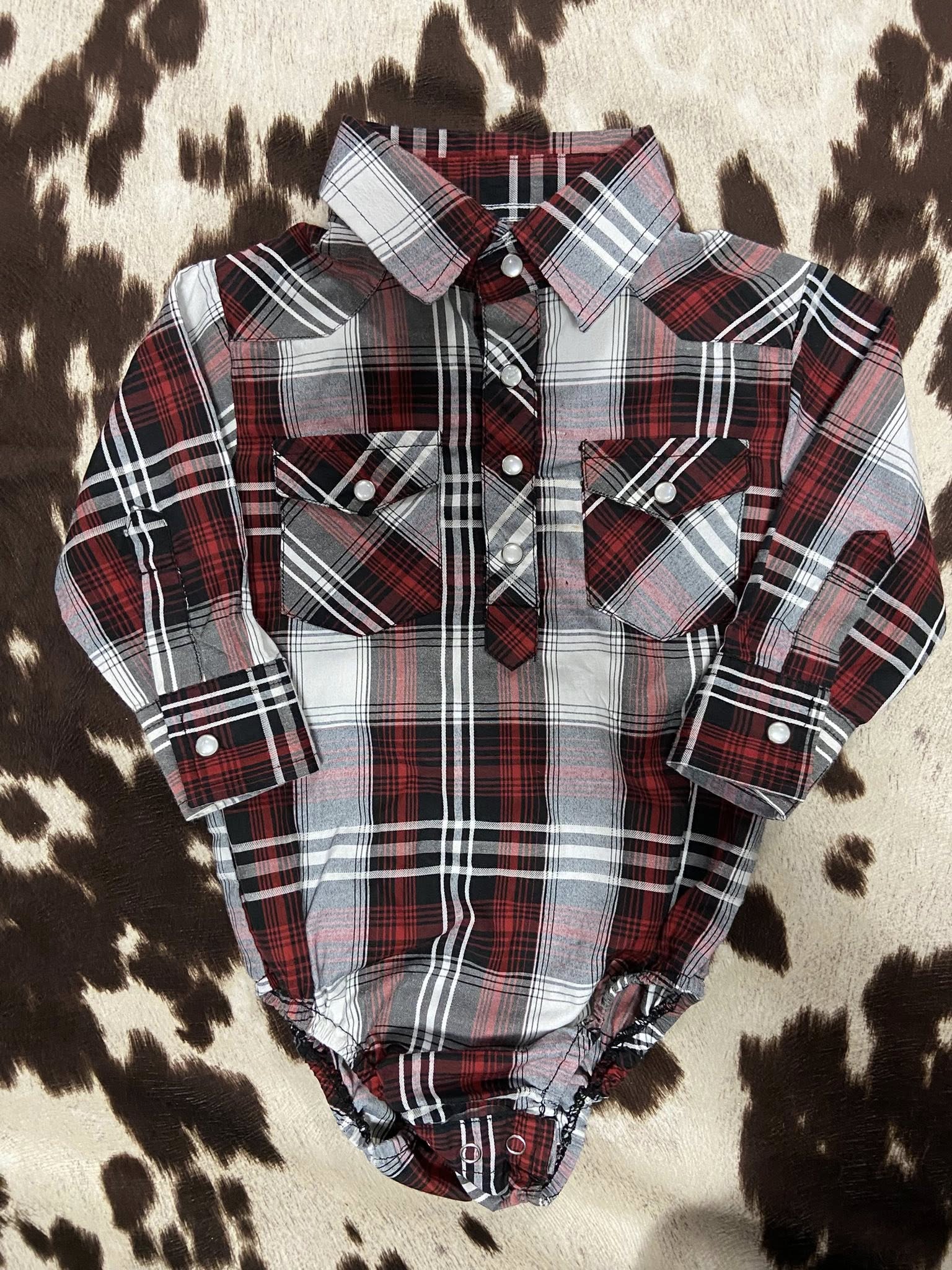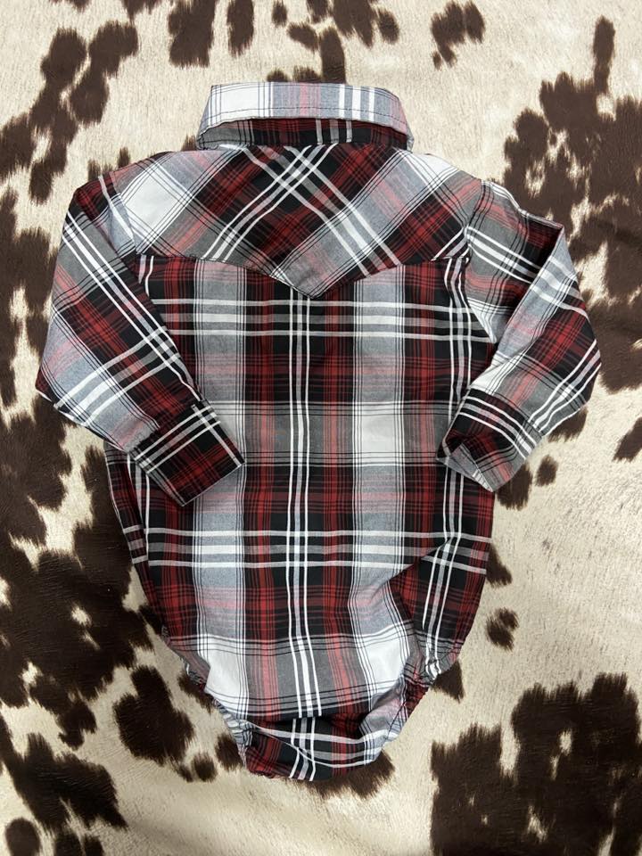 Pre-Loved Red River Outfitters Maroon Pearl Snap Onesie *9-12 Months