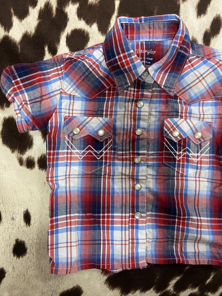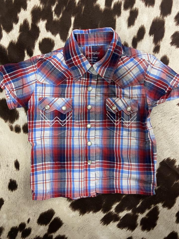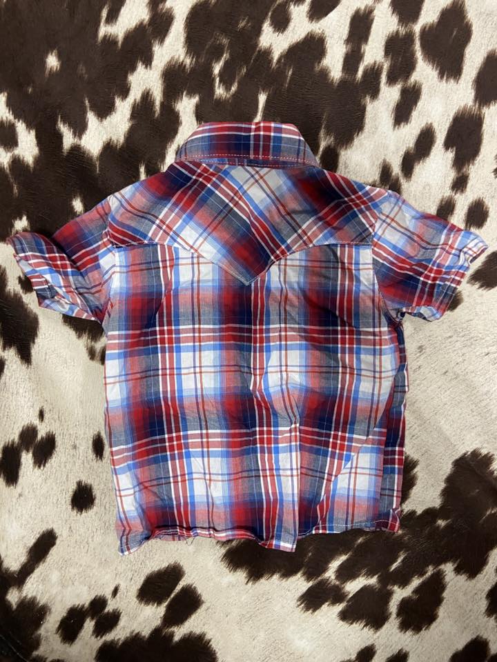 Pre-Loved Wrangler Blue/Red Pearl Snap Western Shirt *3-6 Months