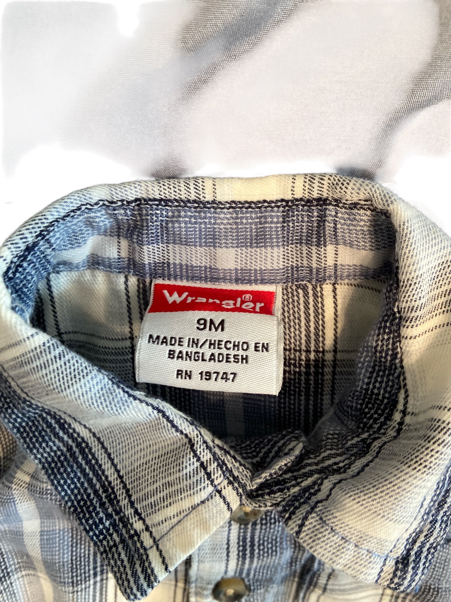 Pre-Loved Wrangler Blue Plaid Onesie *9 Months