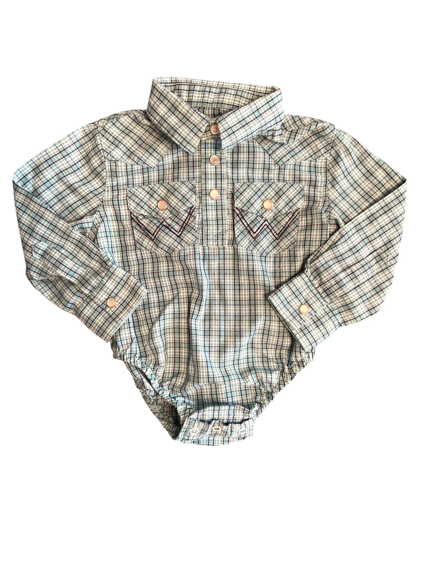 Pre-Loved Wrangler Pearl Snap Teal Onesie