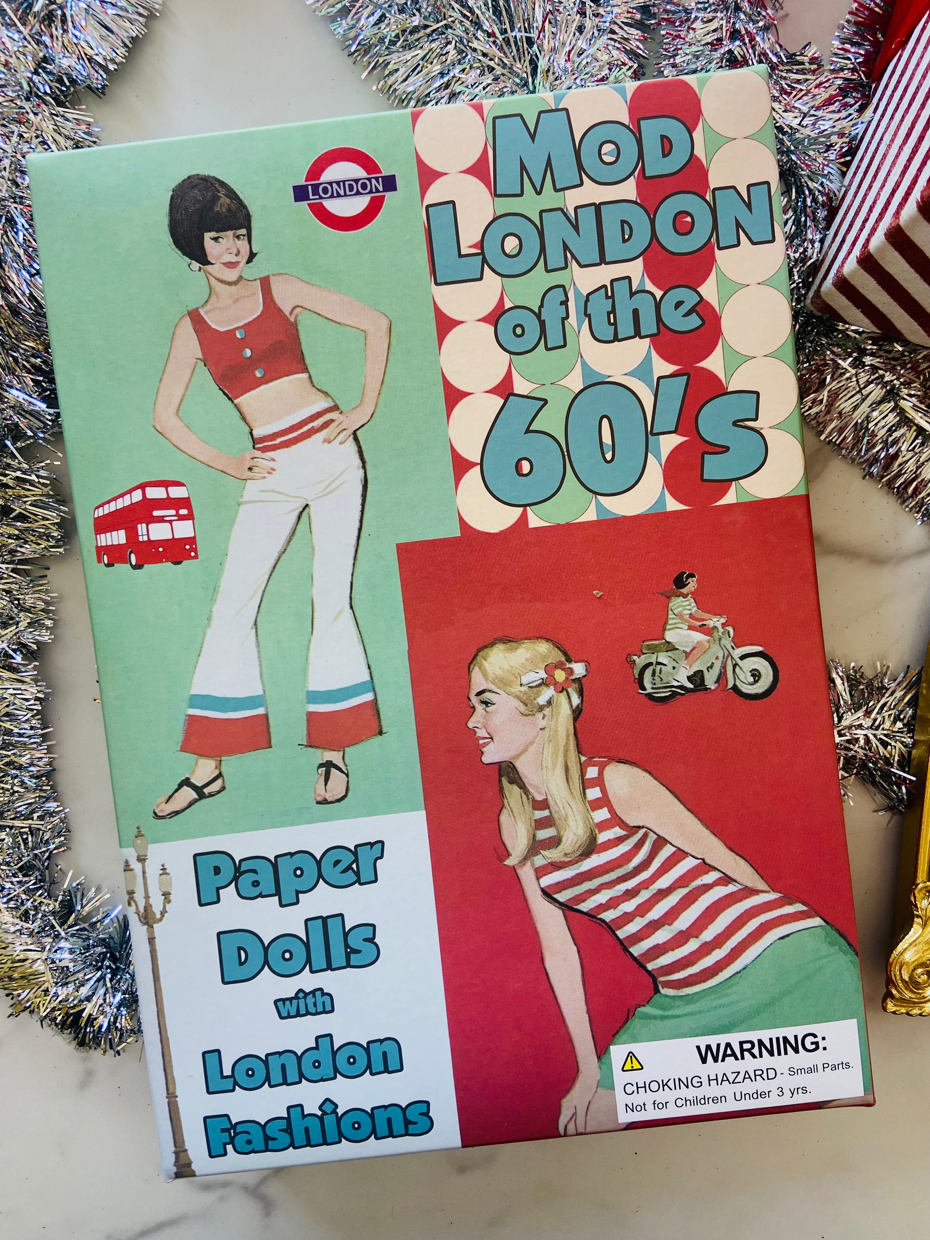 Step into the groovy 1960s with this London Mod Paper Doll Set! Perfect for creative kids, this stylish collection features two paper figures and pages of fab outfits inspired by swinging London fashion. Mix and match mod dresses, go-go boots, and hip accessories to create endless looks. Ideal for imaginative play and fashion fun. Recommended for ages 6+. Box dimensions: 13" x 9.5" x .75".