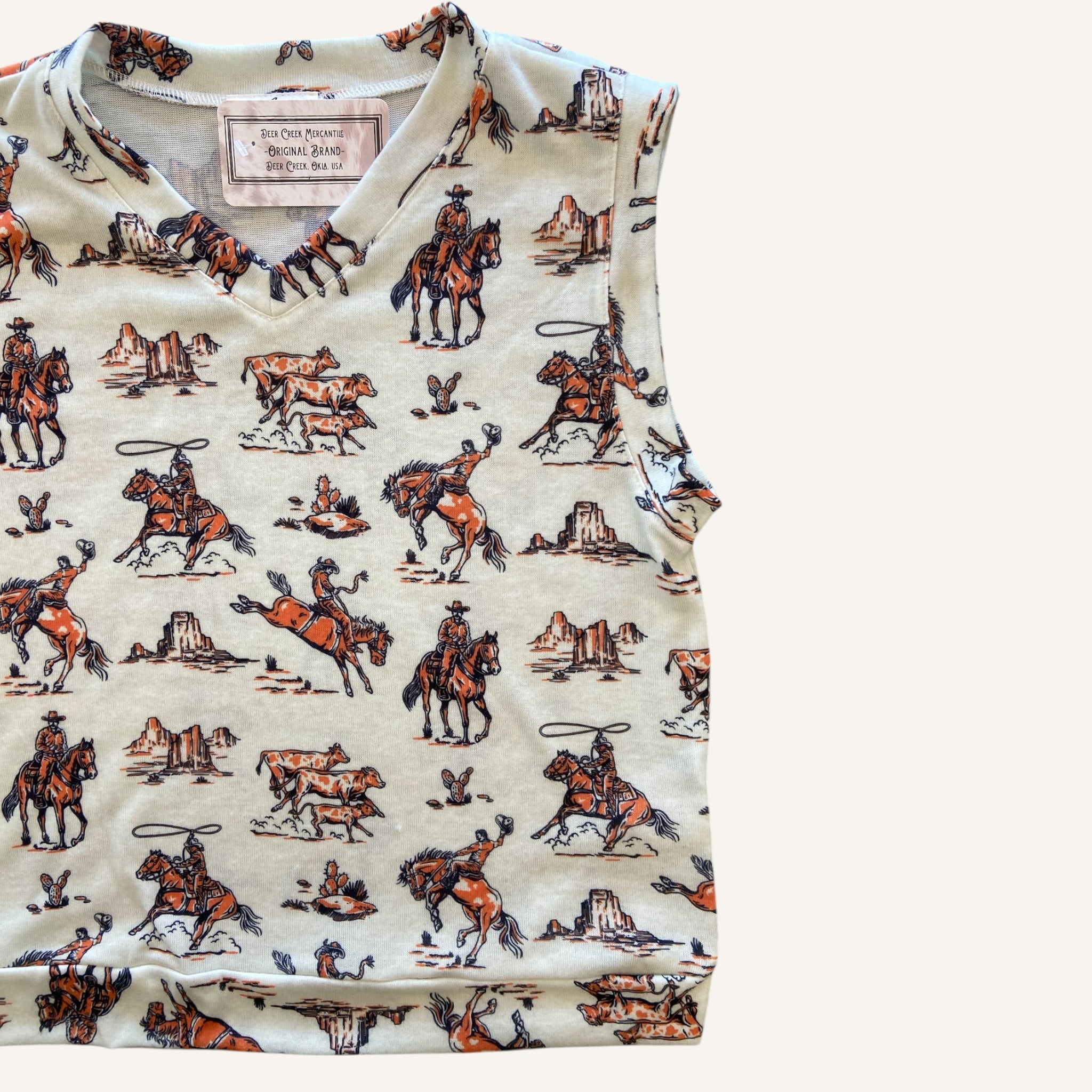 Throw on this lightweight knit vest and discover your new favorite layering piece. Crafted from buttery-soft fabric, it's designed with a relaxed, slightly oversized silhouette that plays well with everything in your closet—think tees, button-ups, or thermal tops underneath. The V-neckline adds a touch of polish without trying too hard. Perfect for those days when you want comfort that doesn't compromise on style, whether you're working the ranch or just living your best western life.