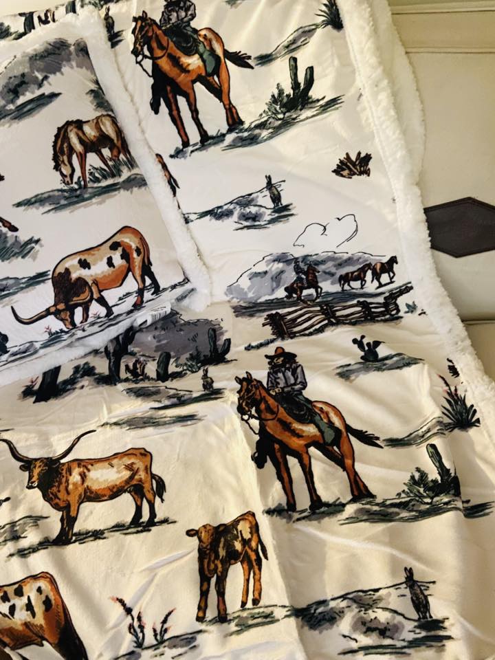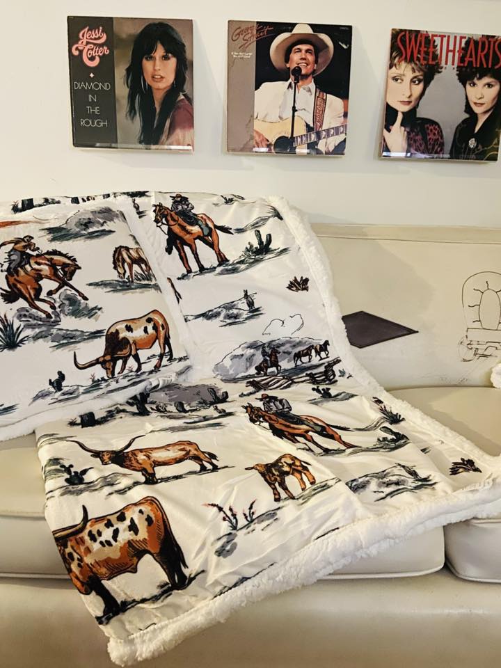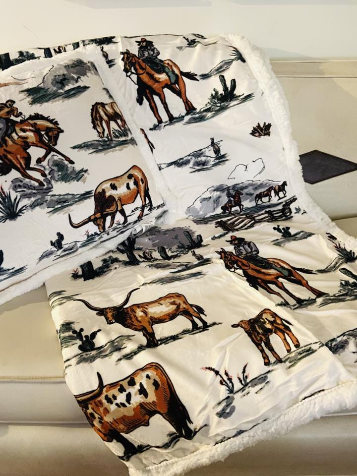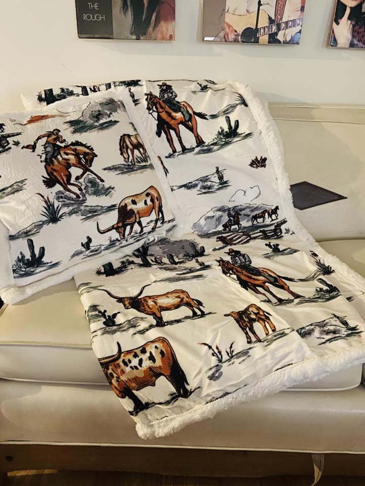 Wrap yourself in pure comfort with this oversized 54"x68" throw blanket that's softer than a cloud and tough enough for ranch life. Featuring a striking Western-inspired design, it's the perfect companion for cozy nights by the fire, lazy afternoons on the porch, or adding a touch of country charm to any room.