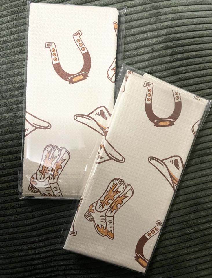 Step into western tradition with the Western Horse Boots Dish Towel, a spirited homage to equestrian heritage and ranch life. Sized at 16" x 24", this towel displays a permanently printed horse boots design that stretches across the full surface with authentic cowboy appeal. The waffle weave magic lies in those raised looped edges that form moisture-absorbing pockets—keeping the towel's face dry while you polish dishes, glassware, and countertops with ease and zero lint. Engineered from a resilient 80% polyester and 20% polyamide blend, it's designed for reliable daily performance. Gift-ready in its own cellophane sleeve, it's the perfect present for the horse lover who appreciates quality craftsmanship and western style in their kitchen.