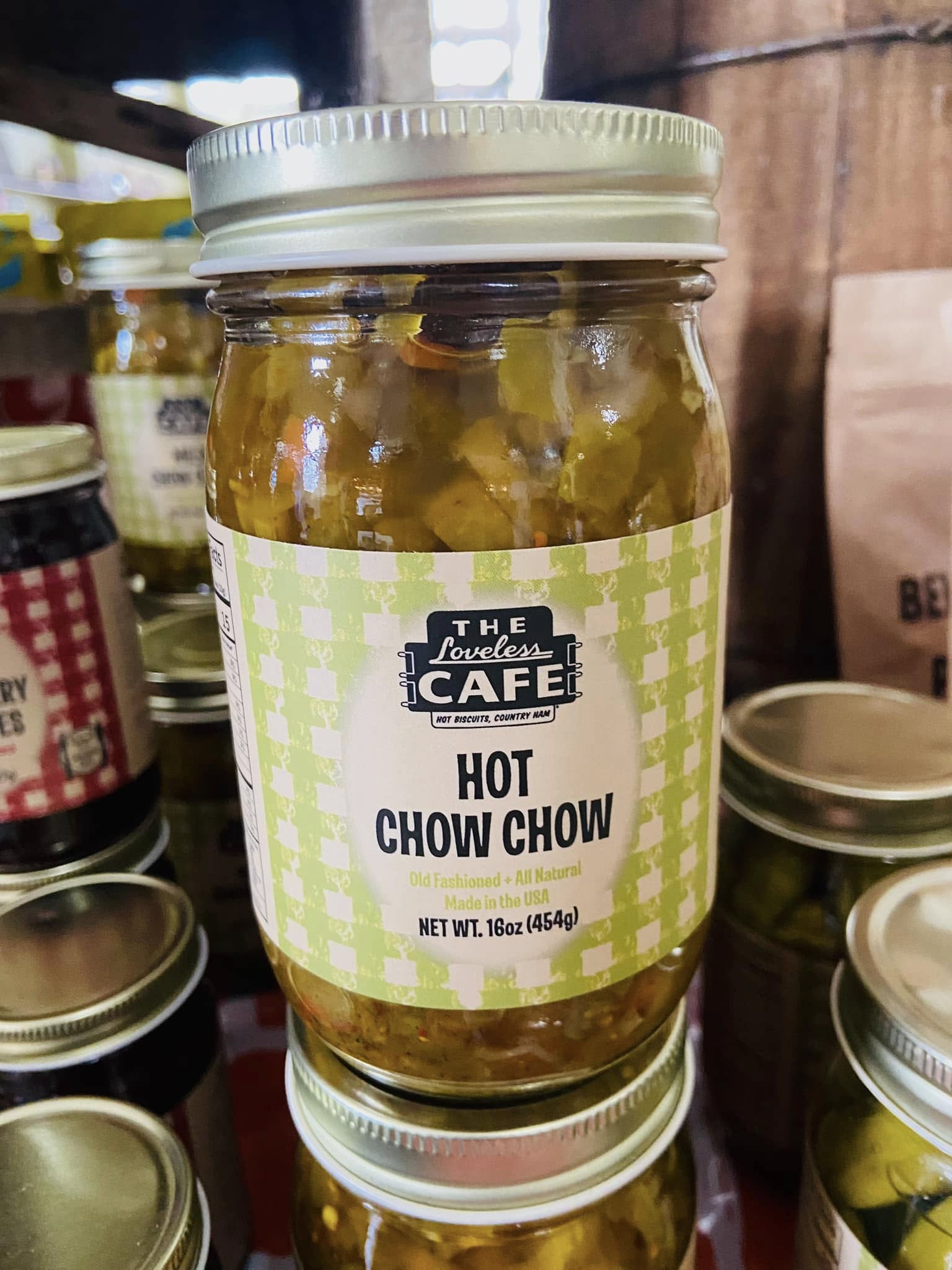 Savor the tangy heat of The Loveless Cafe's Hot Chow Chow! This deliciously spicy condiment will add a kick to any dish. Perfect for those who love a little extra heat in their meals. Elevate your taste buds and add some loveless spice to your life!