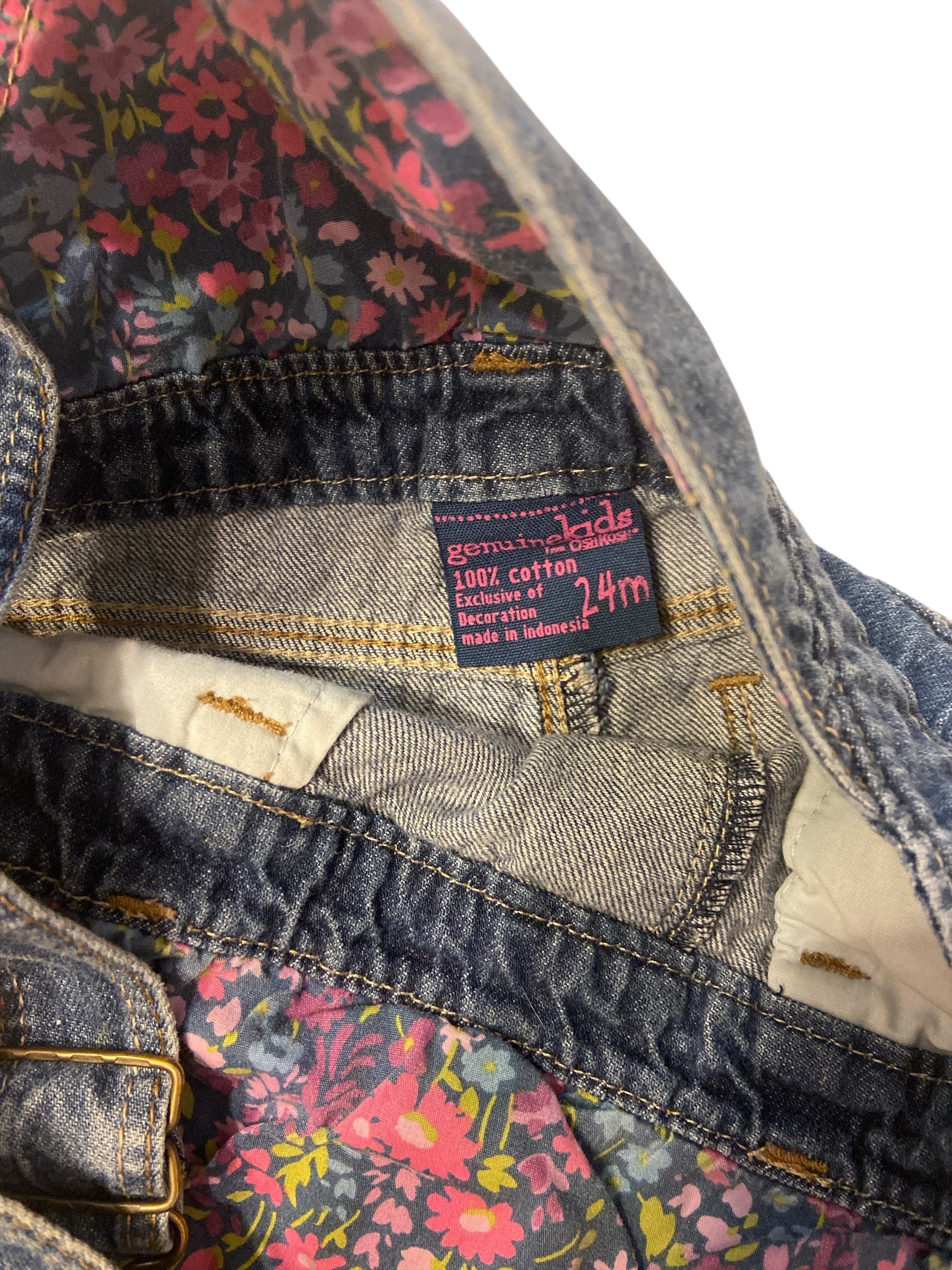 Pre-Loved Genuine Kids Oshkosh Floral Denim Overalls *Size 24 Months