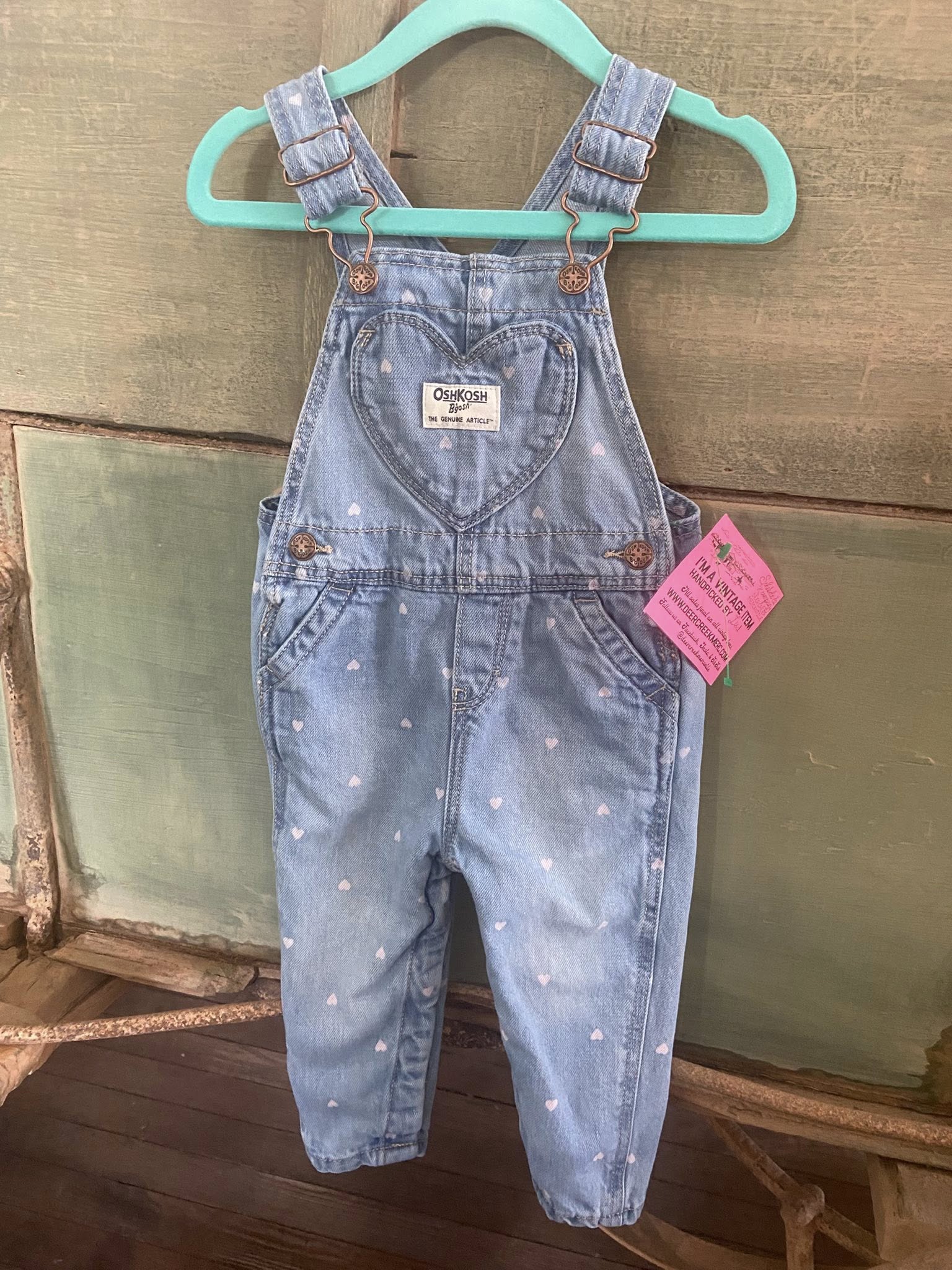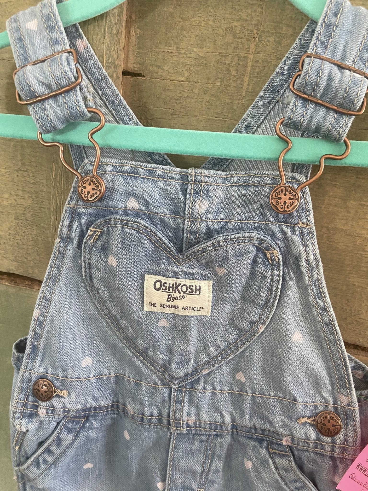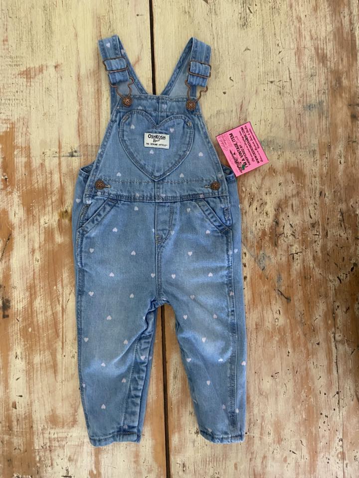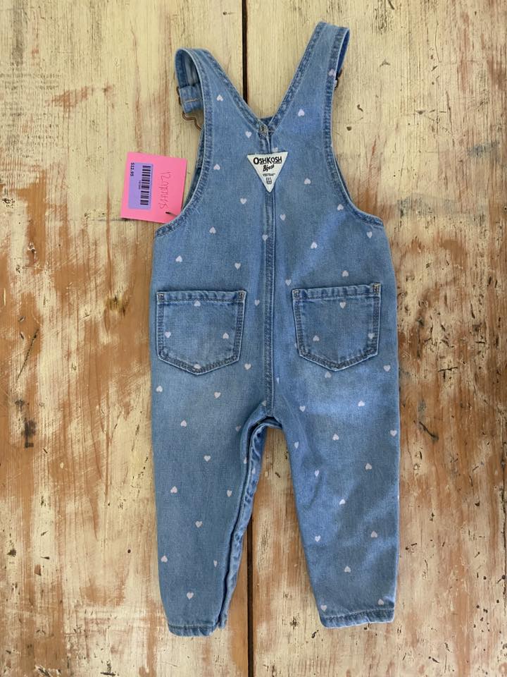 Pre-Loved OshKosh Pink Heart Denim Overalls (Size 12 Months)