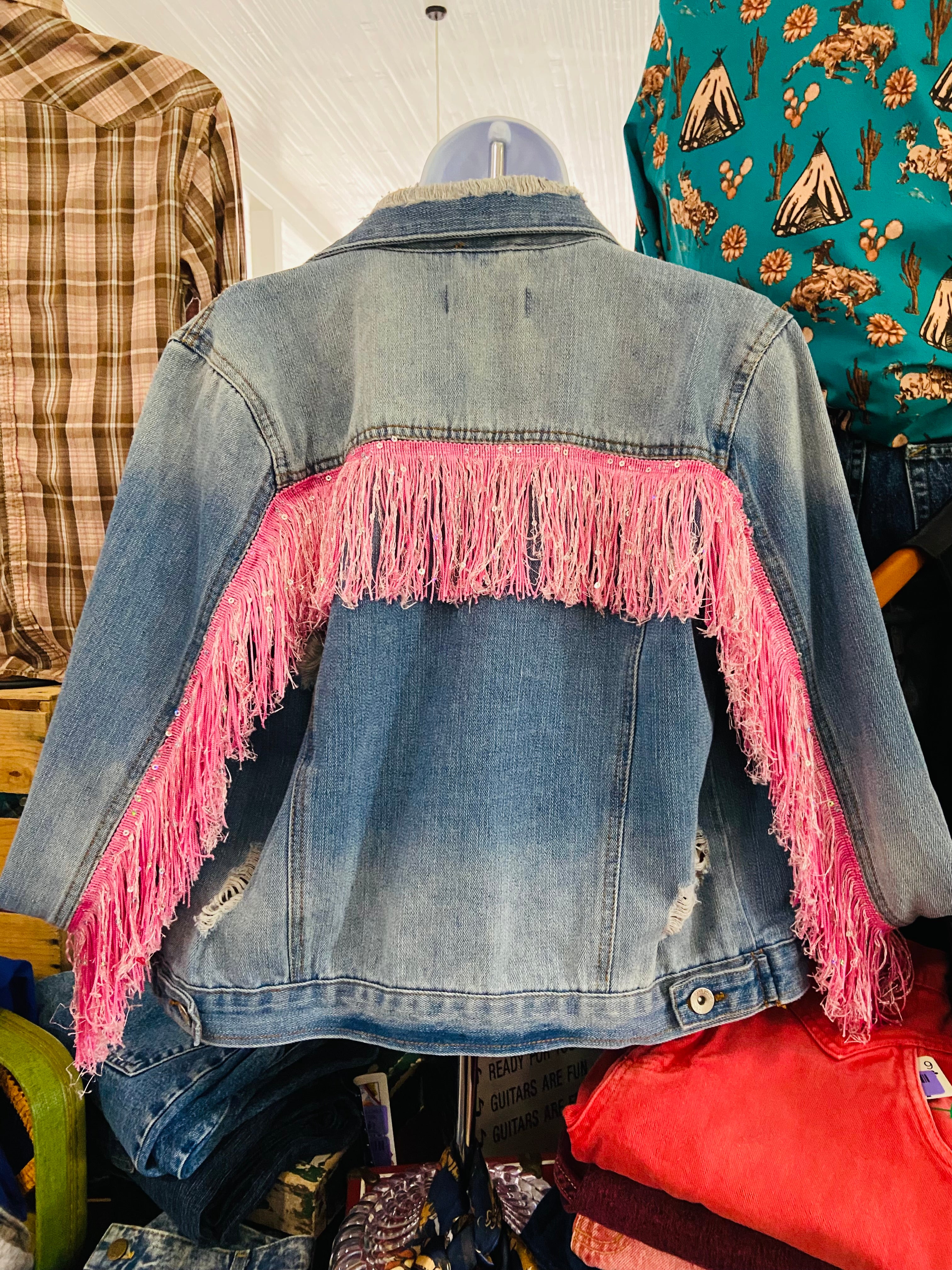 Pre-Loved Pink Fringe Denim Jacket Ci Sono Brand *Size Medium is backordered and will ship as soon as it is back in stock.