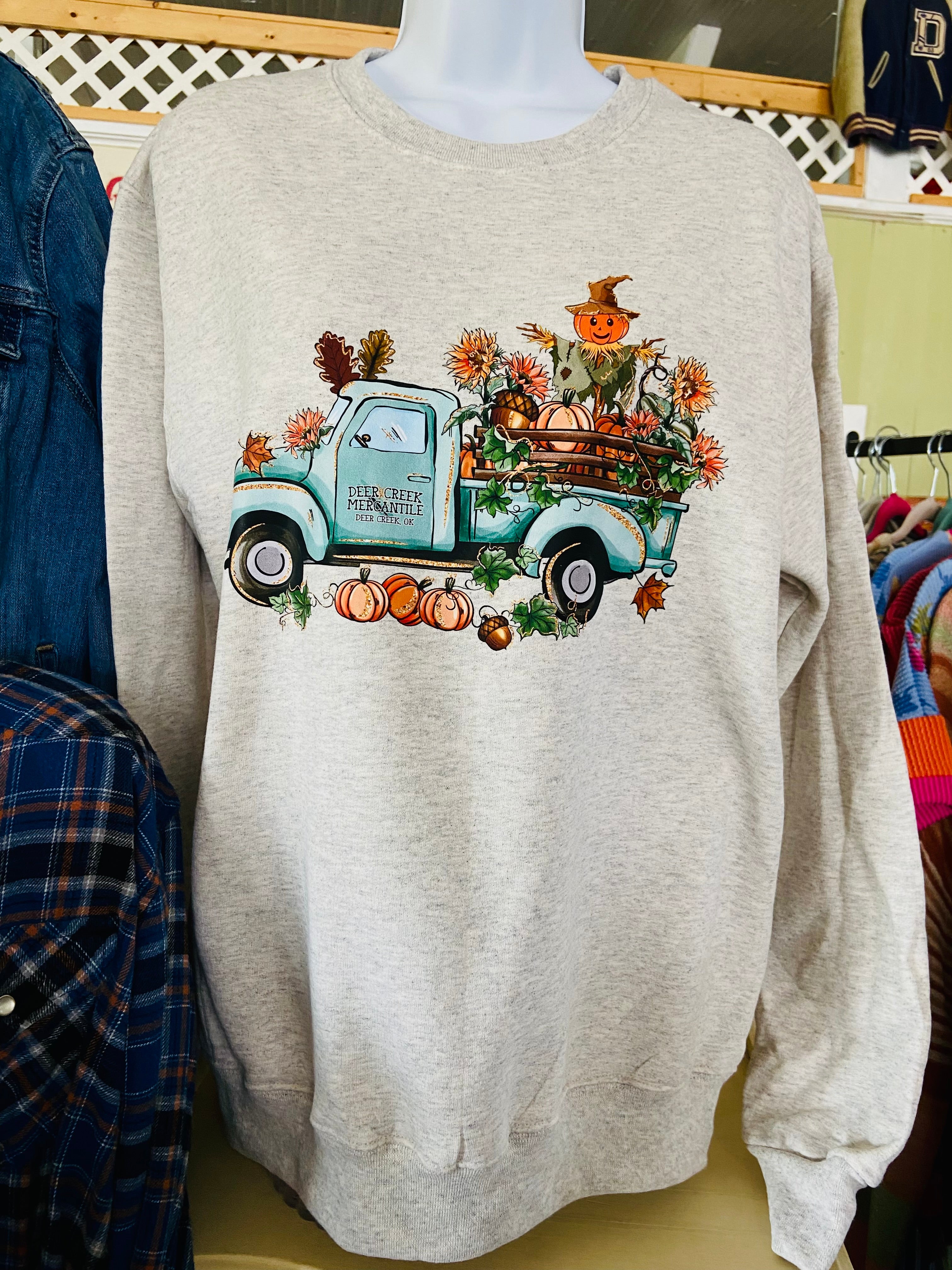Deer Creek Mercantile Pickup Truck Sweatshirt - Small is backordered and will ship as soon as it is back in stock.
