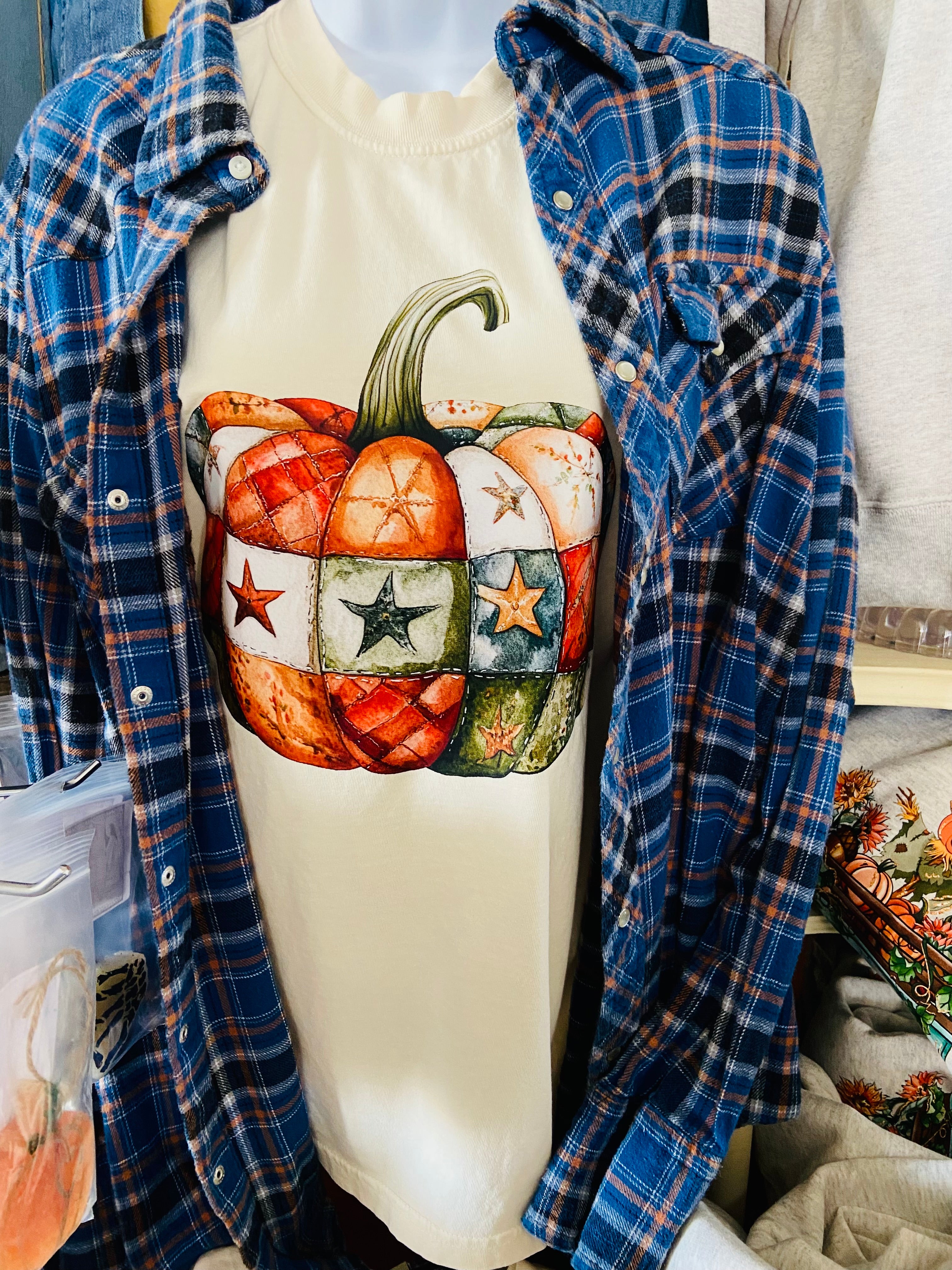 The Quilted Pumpkin Graphic Tee (Comfort Colors) - Small is backordered and will ship as soon as it is back in stock.