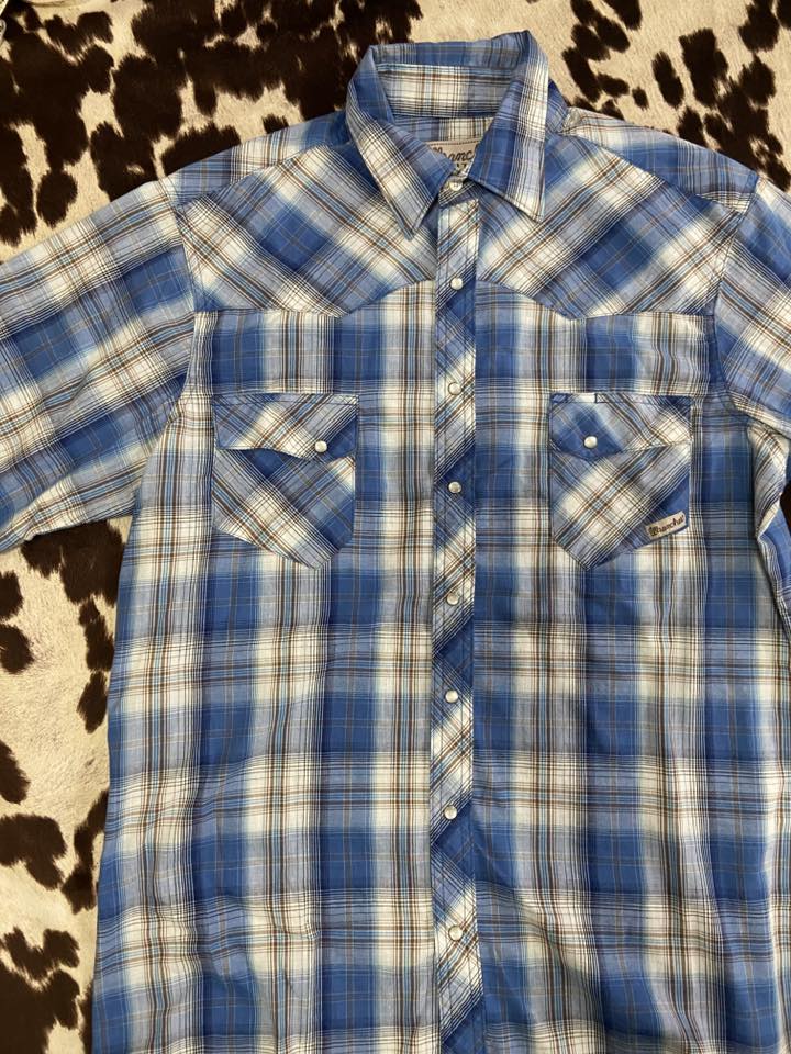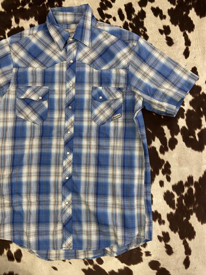 Vintage Wrangler Blue Pearl Snap Shirt *Large Tall