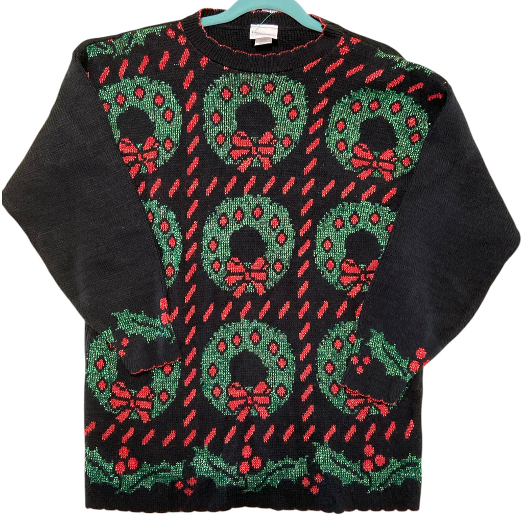Vintage Holiday Time Made in USA Wreath Christmas Sweater *Size Small