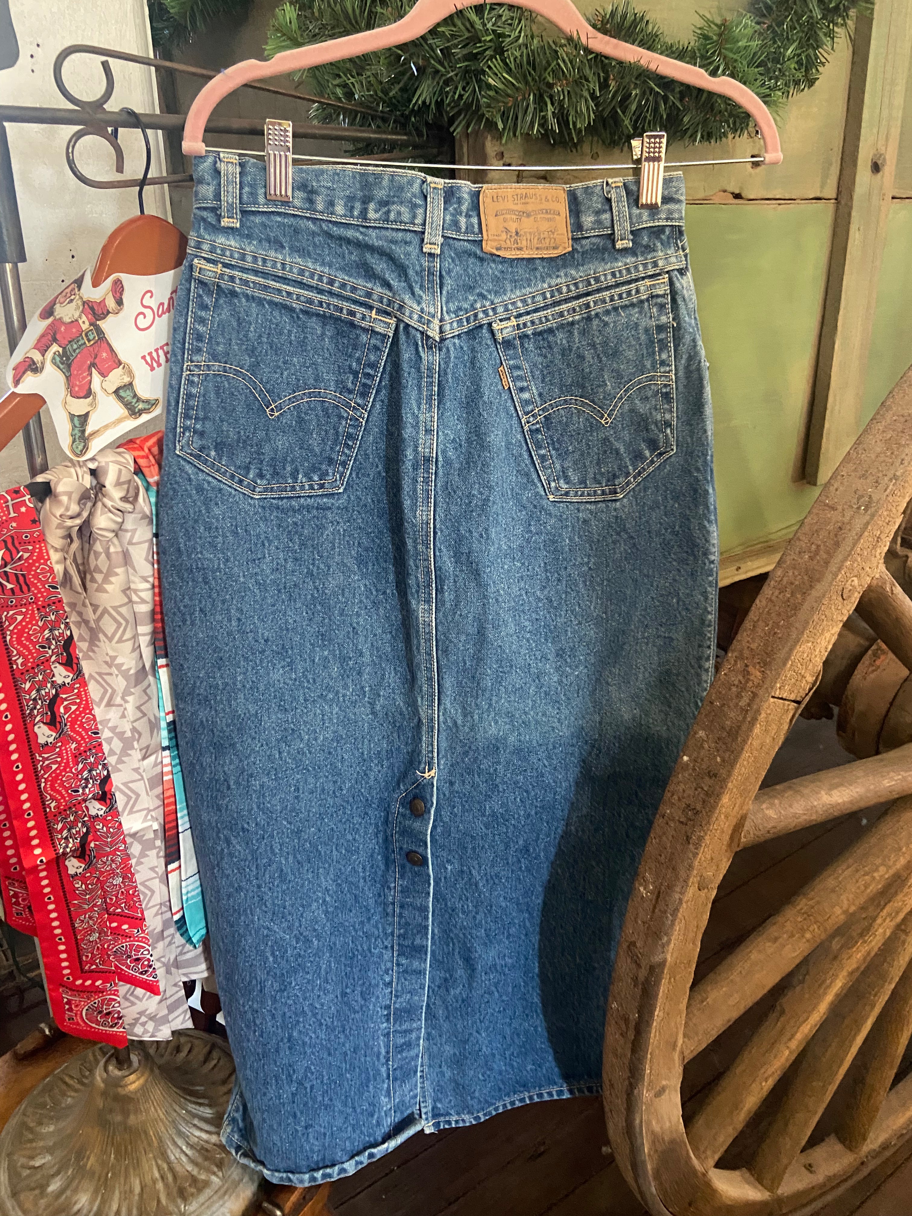 Vintage Levi's denim skirt that's ready for a second act. Made in the USA with that authentic Levi's construction you can feel, this 28" waist beauty is in great condition—no major flaws, just the kind of lived-in character that makes vintage pieces special. Perfect for pairing with your favorite boots, sneakers, or a crisp white tee. A timeless closet staple that never goes out of style.