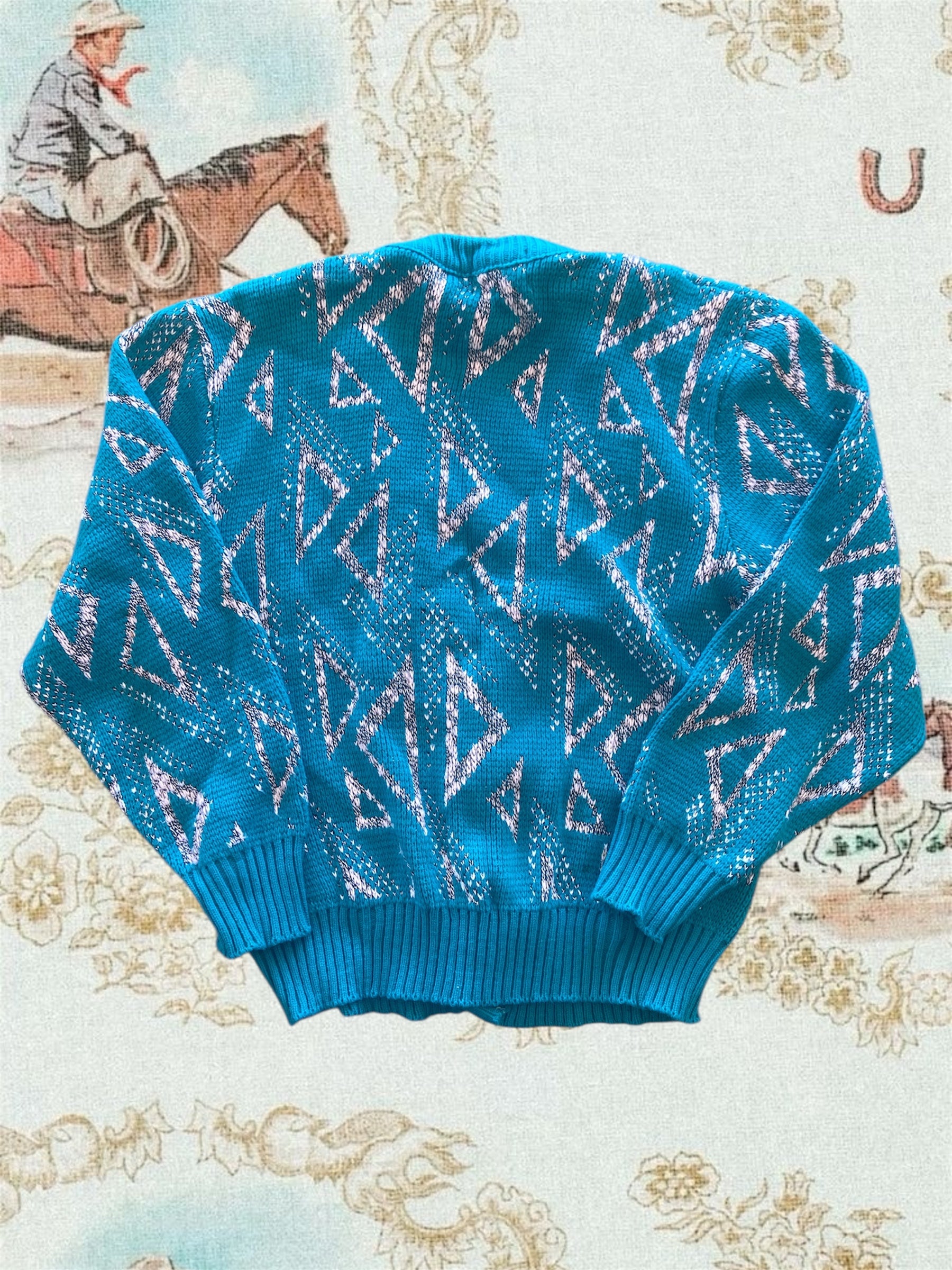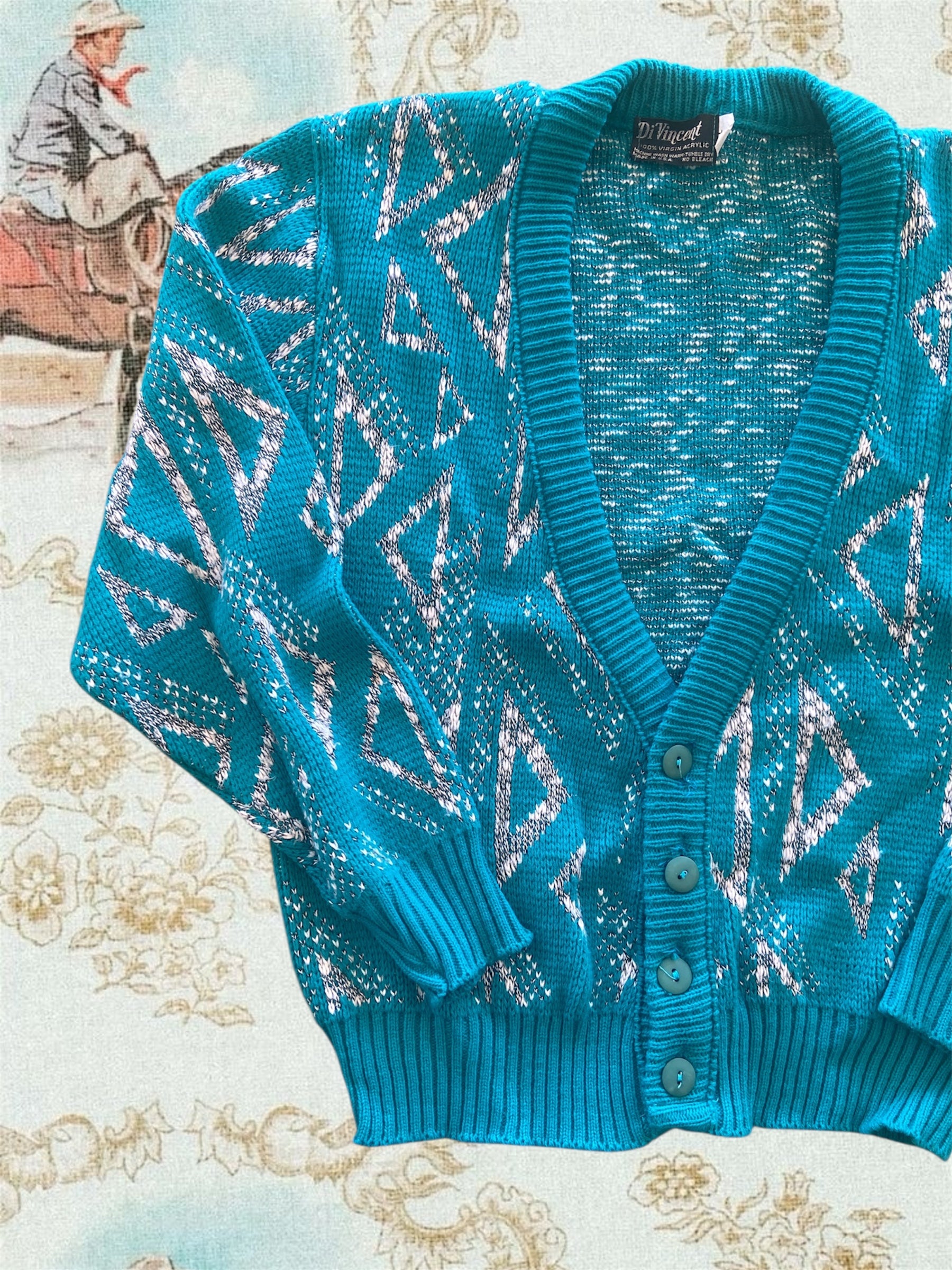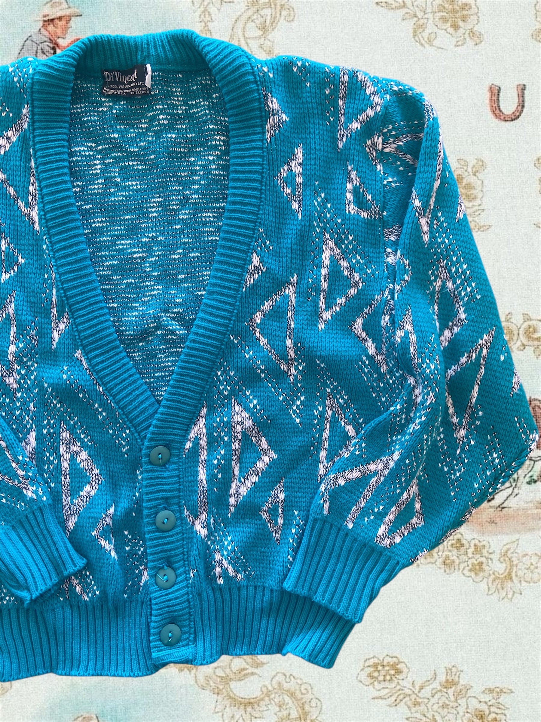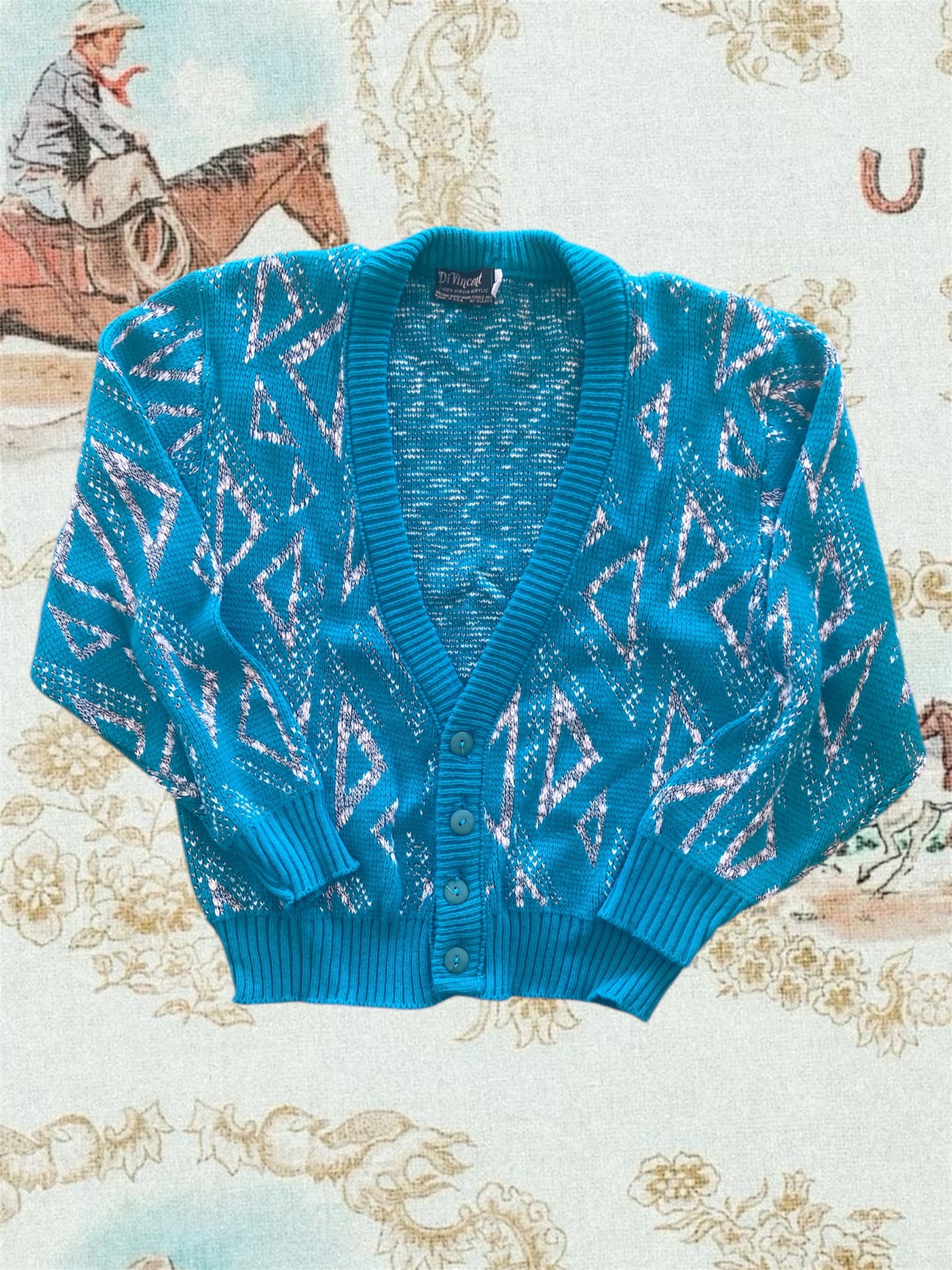 Vintage Di Vincent Turquoise Western Sweater Cardigan *XL