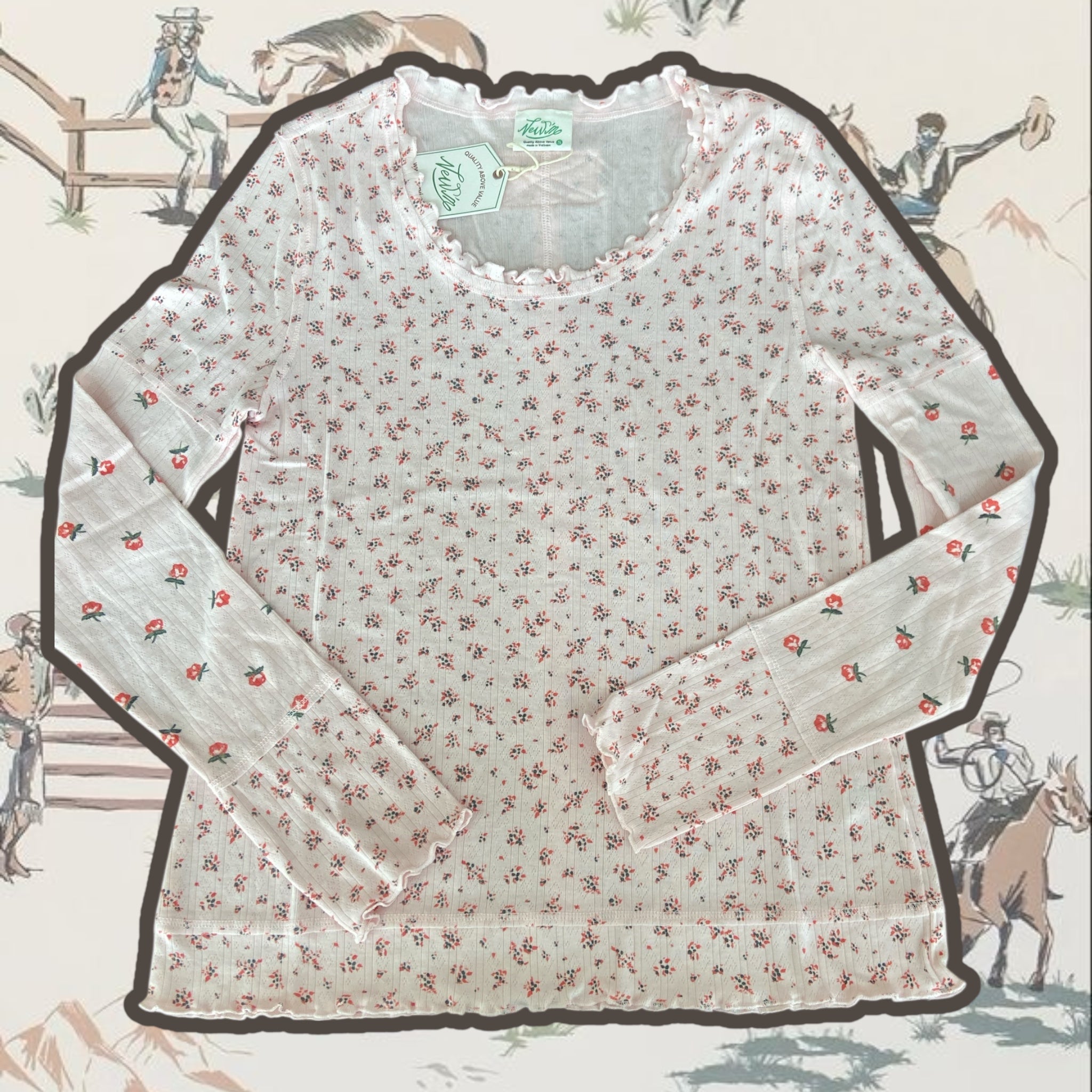 Bring a pop of color to your everyday rotation with this fitted floral knit top. The delicate floral print pairs perfectly with the playful lettuce hem detail for a touch of texture and movement. Lightweight and versatile, it's the kind of piece you'll reach for season after season—dress it up with a skirt or keep it casual with your favorite jeans. A wardrobe essential that works as hard as you do.