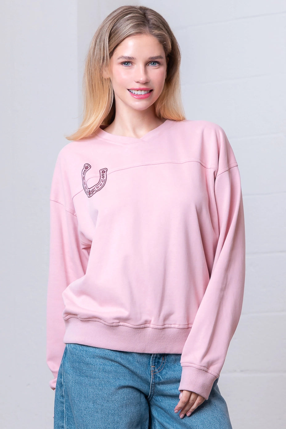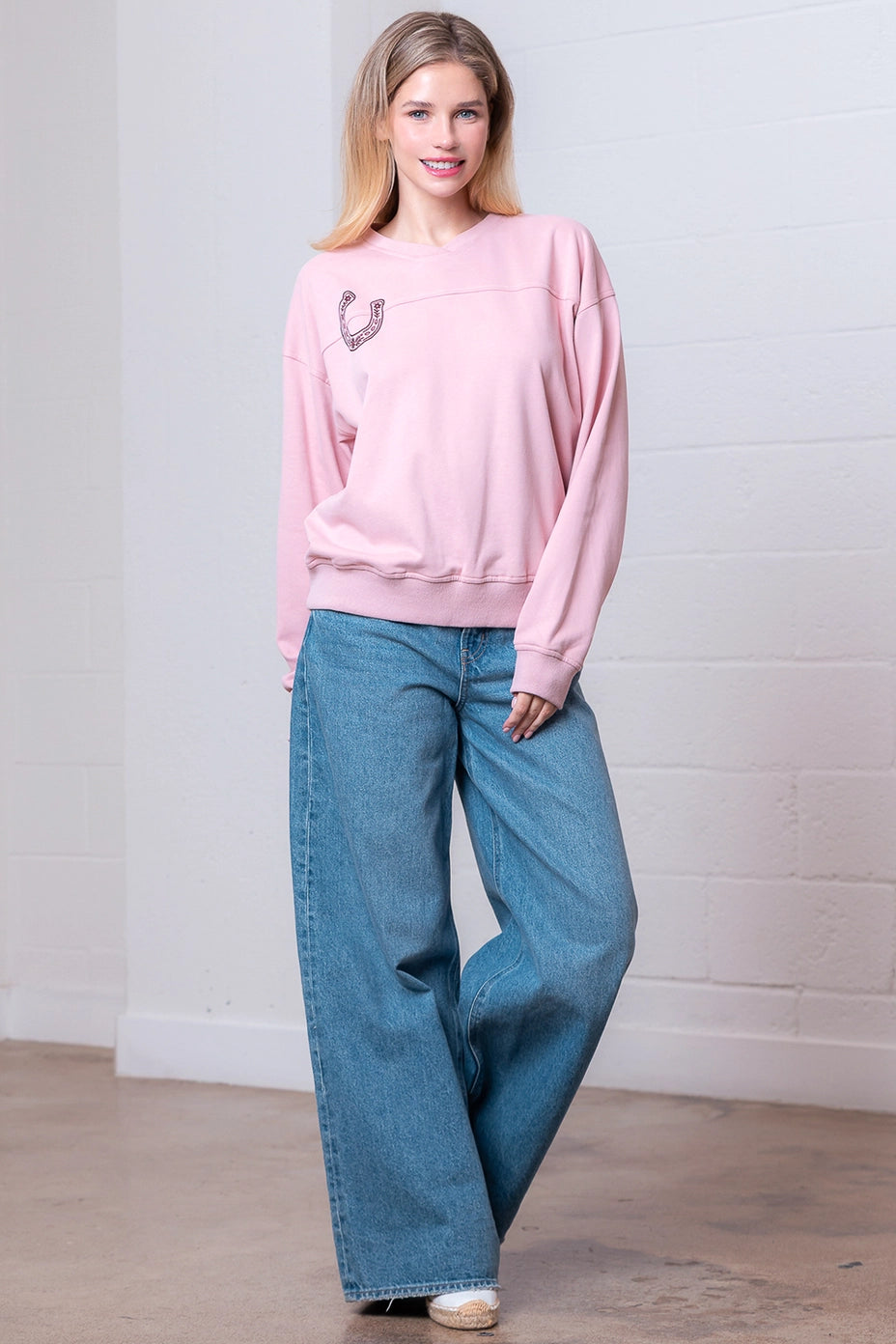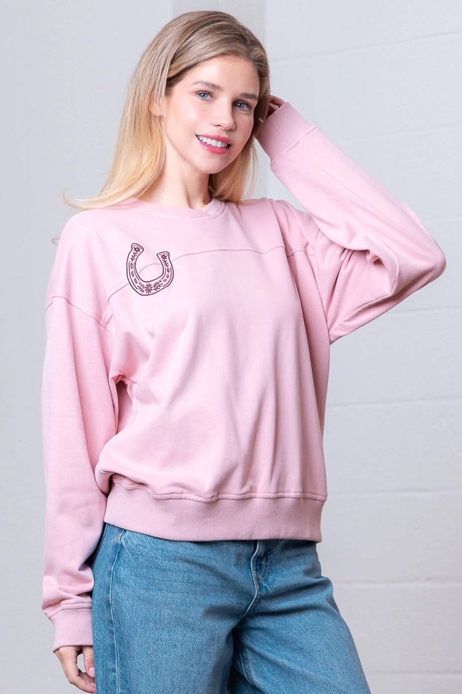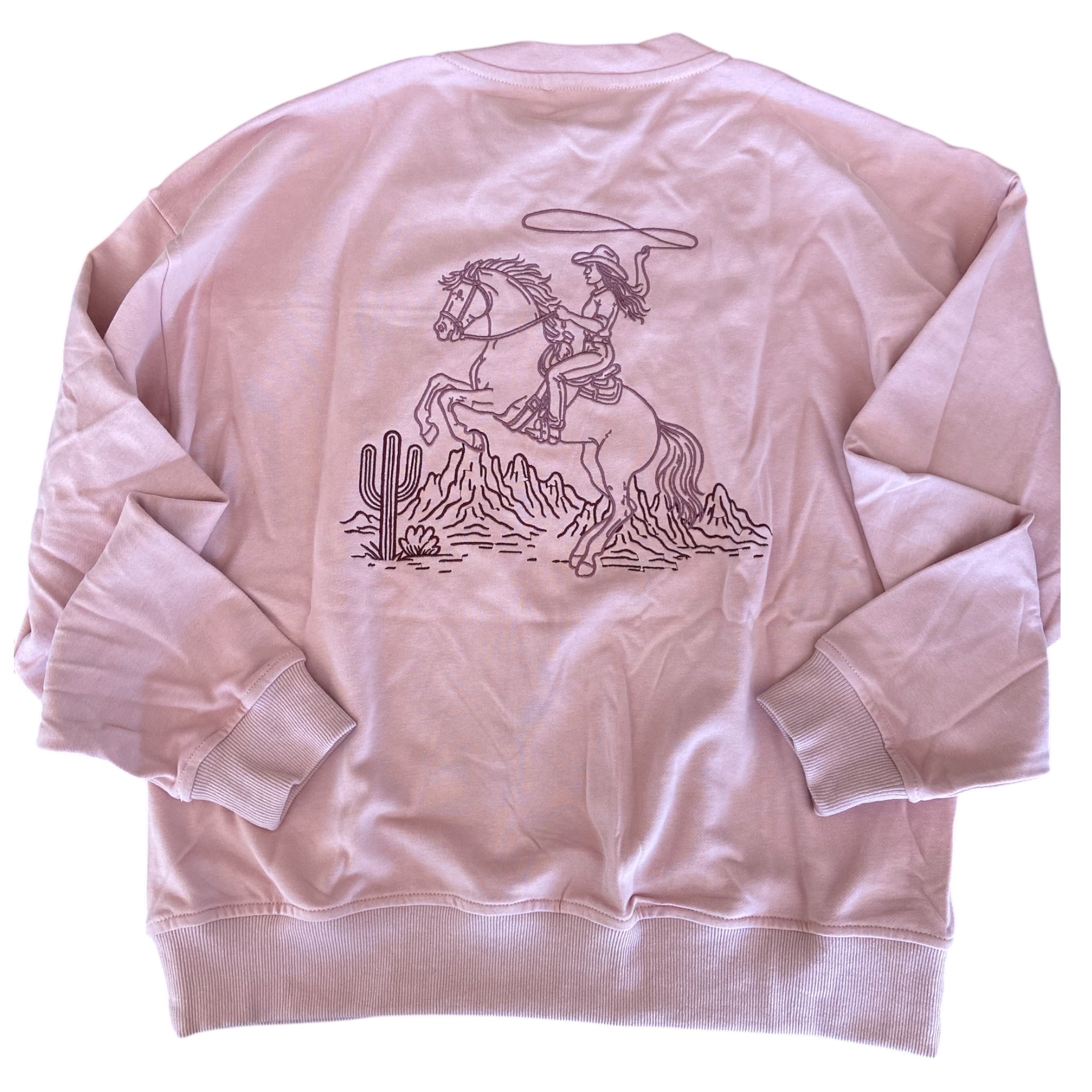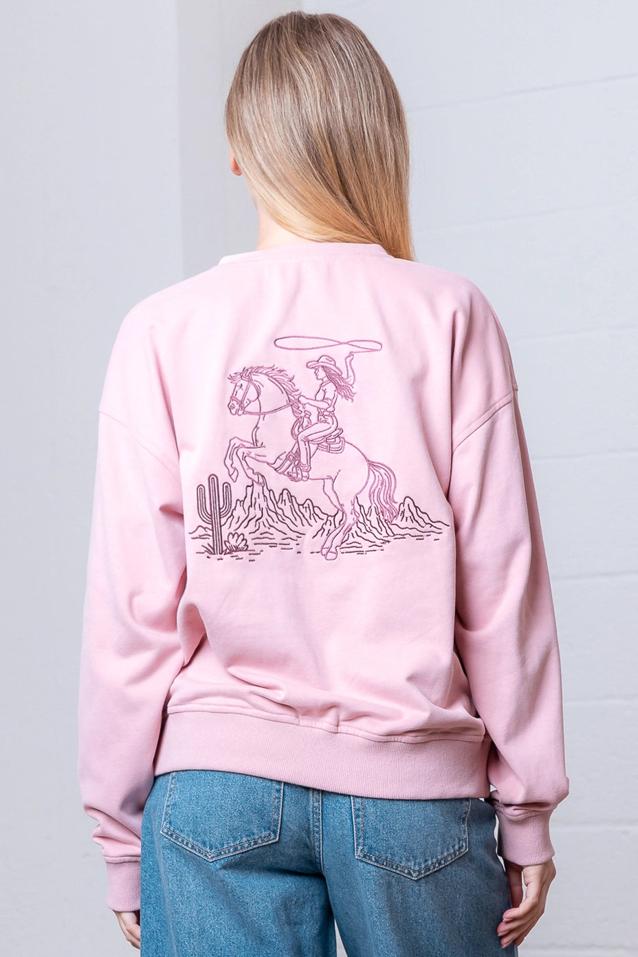 Saddle up in style with this adorable Western Cowgirl Long Sleeve Jersey Shirt. Featuring charming front and back prints, embroidered, that celebrate cowgirl spirit, this tee combines comfort with personality. The soft fabric offers just enough stretch to move with you, while the relaxed fit keeps things laid-back and effortless. Perfect for ranch days, casual outings, or anyone who loves western vibes with a playful edge. Available in pink.