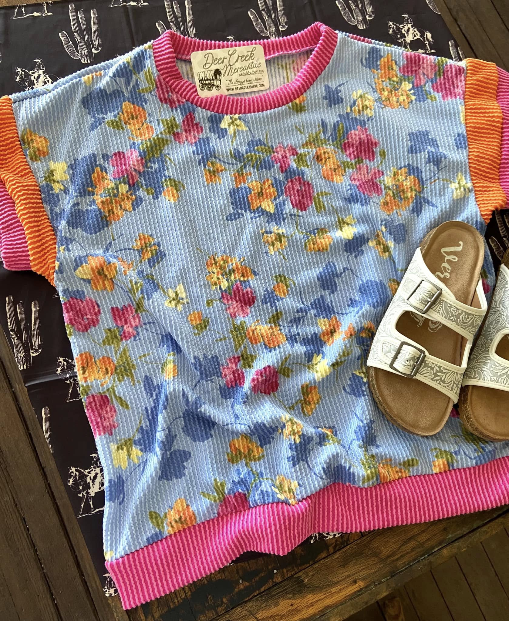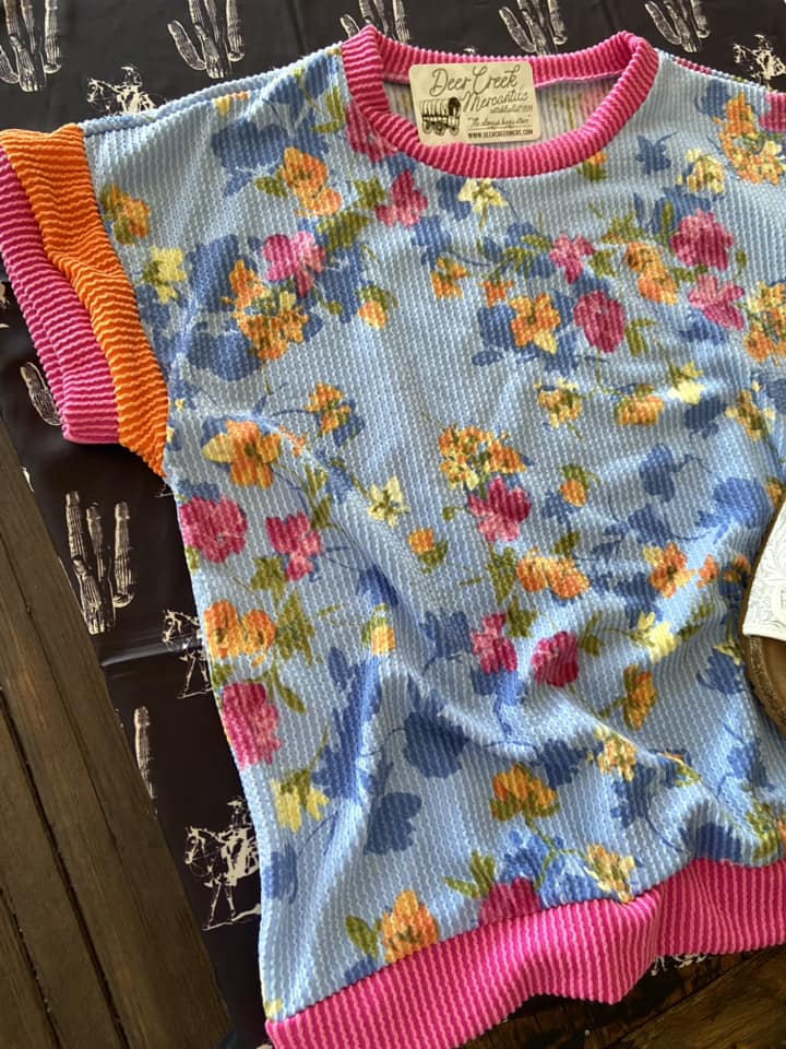 Bring vibrant energy to your wardrobe with Betty's Fun Floral Women's Top! The colorful floral design will make you stand out in any crowd, while the ribbed retro vibes add a touch of nostalgia. Elevate your style with this fun and trendy top