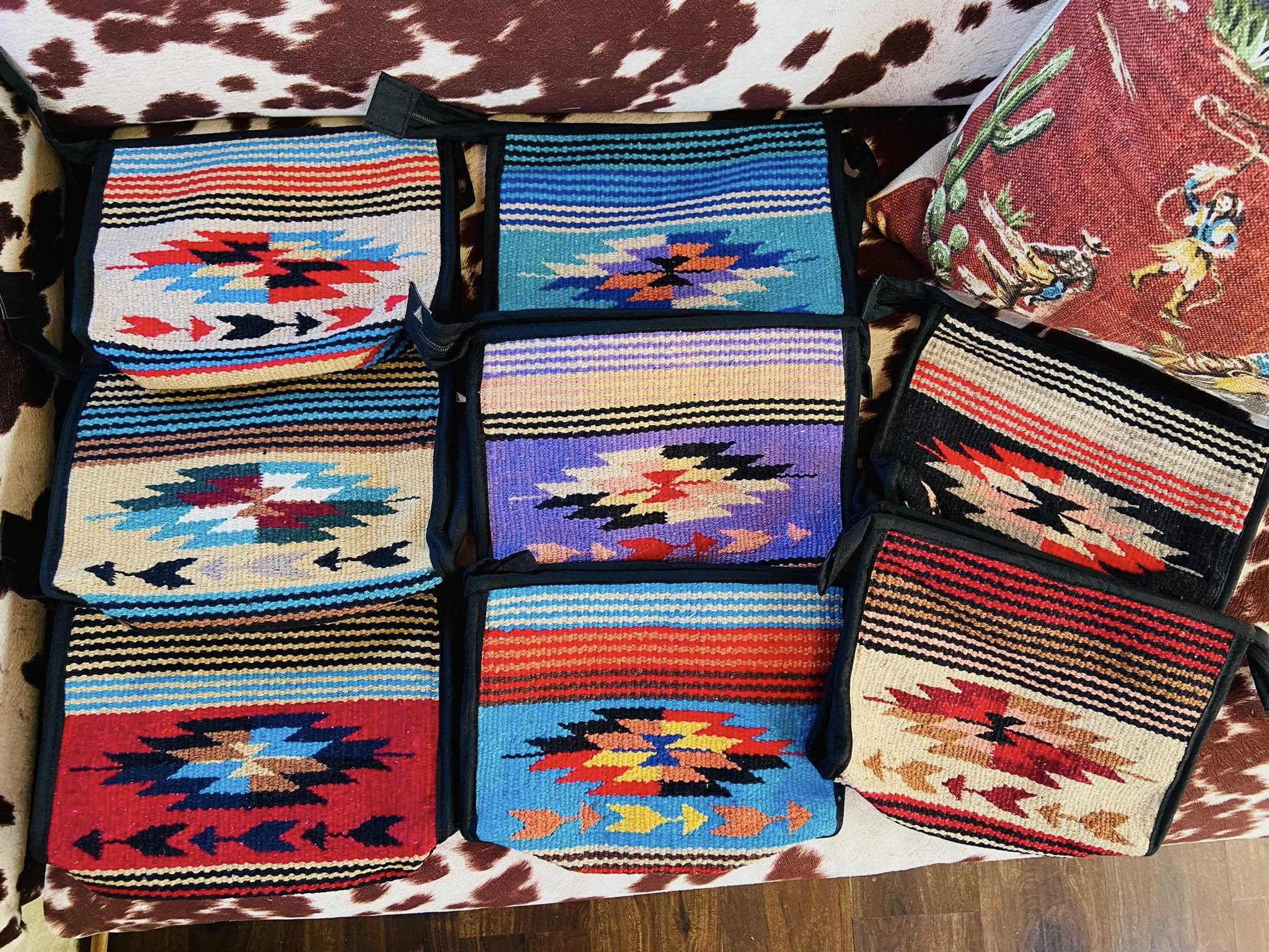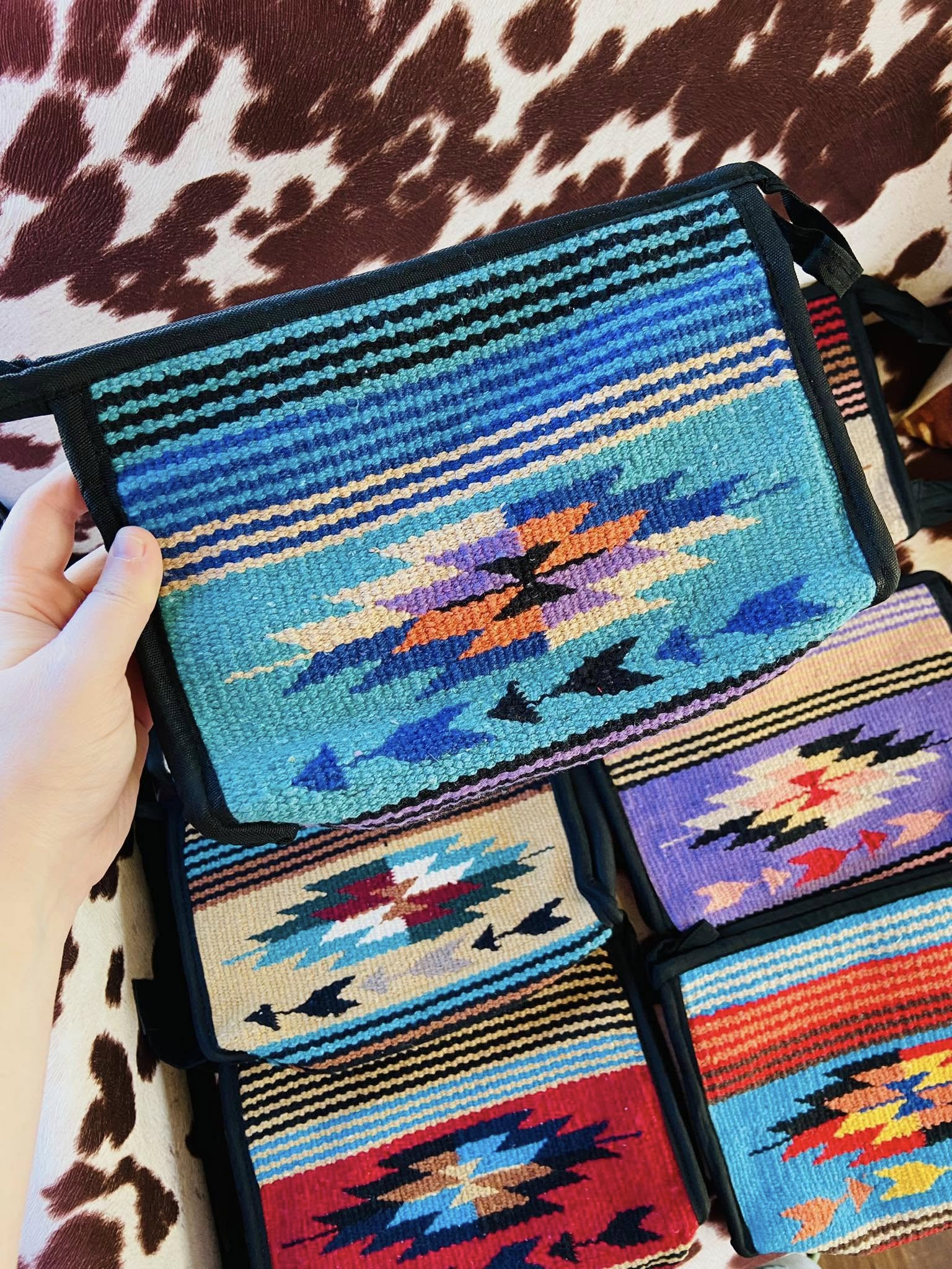 This stylish bag features a zipper top for added security and is made of durable cotton material. Its compact size of 7" high x 10" long x 3" deep makes it the perfect choice for all your on-the-go needs. Stay organized and secure with this must-have accessory.