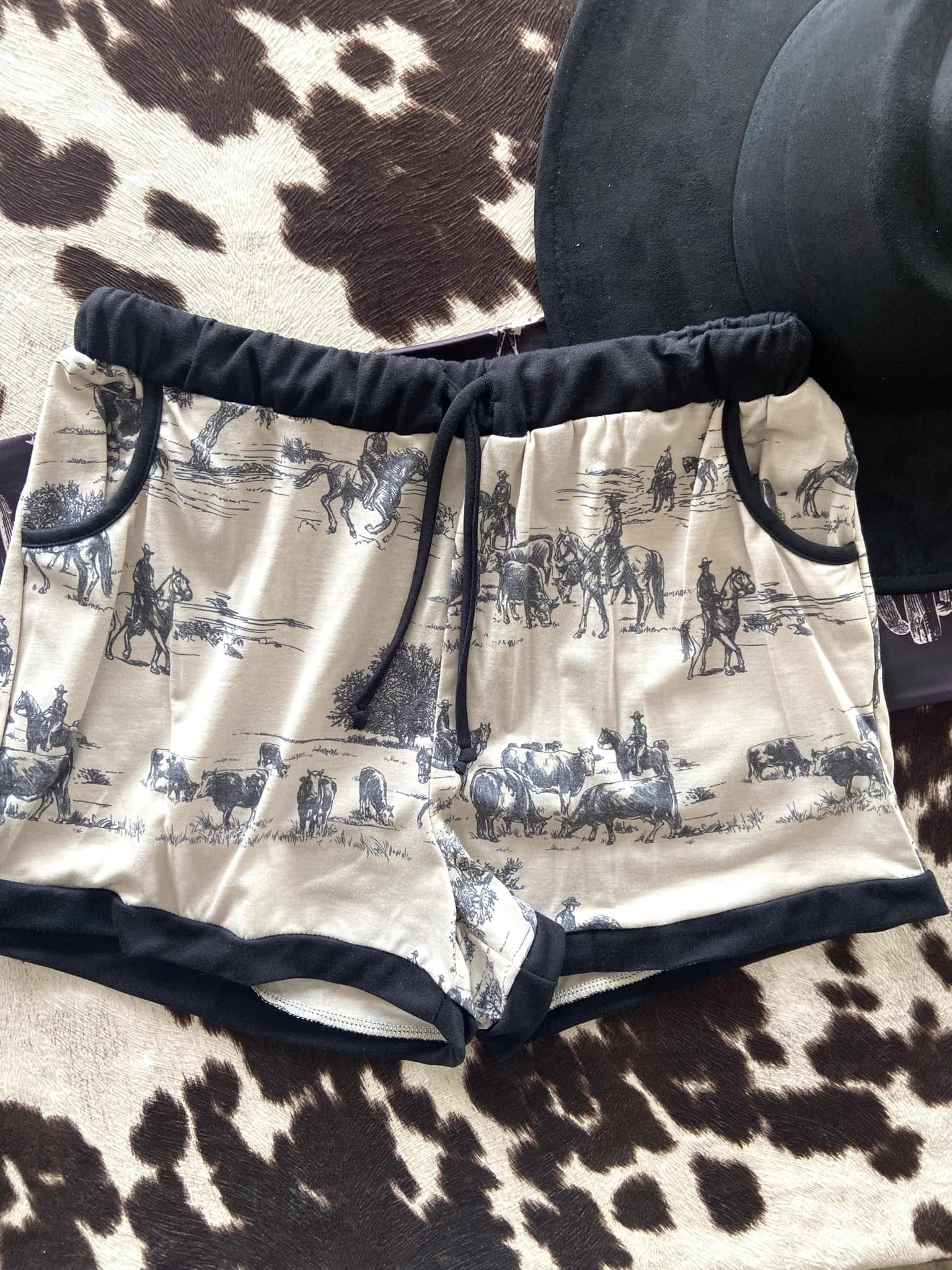The Trails Western Cowboy Print Shorts