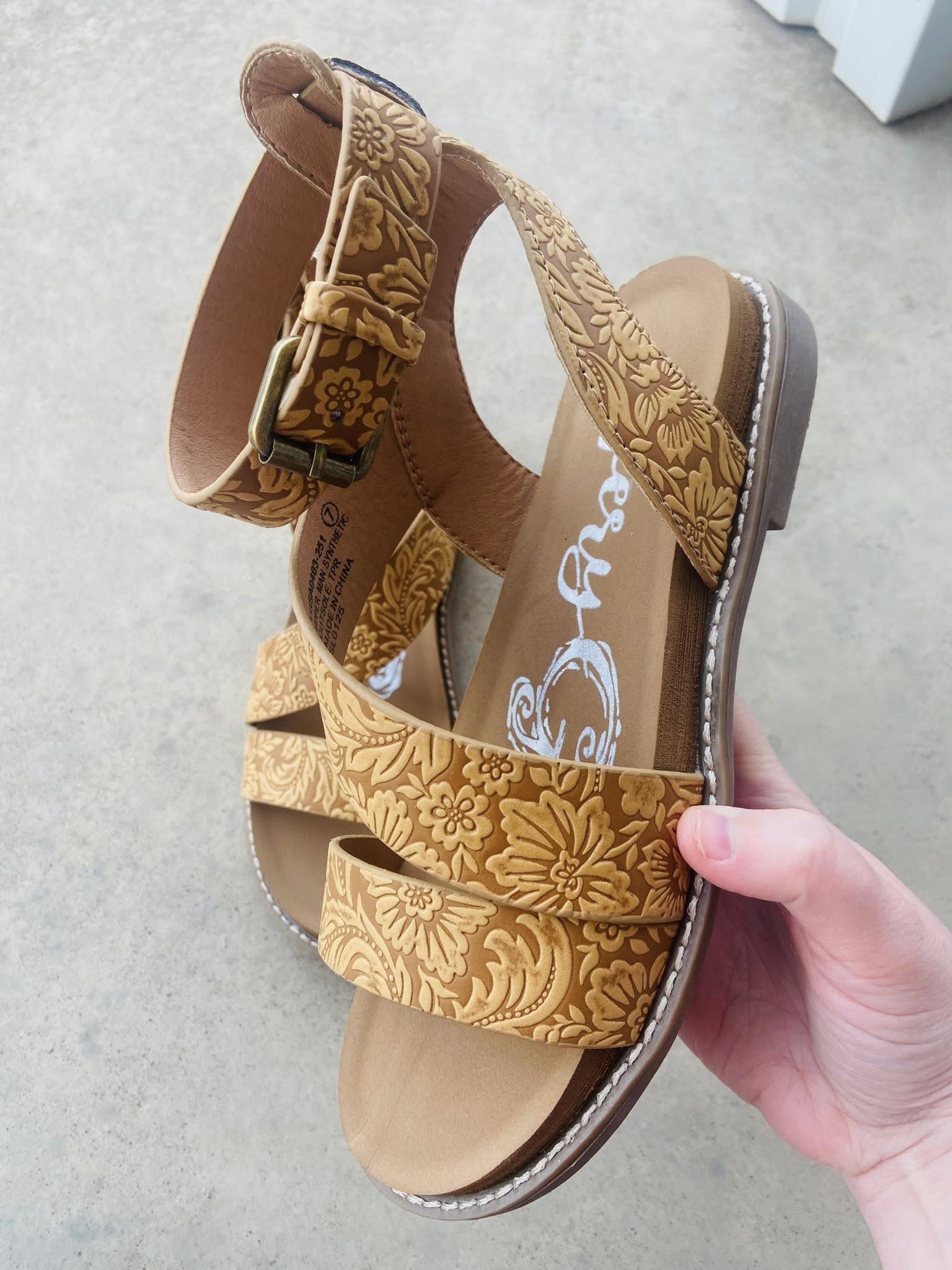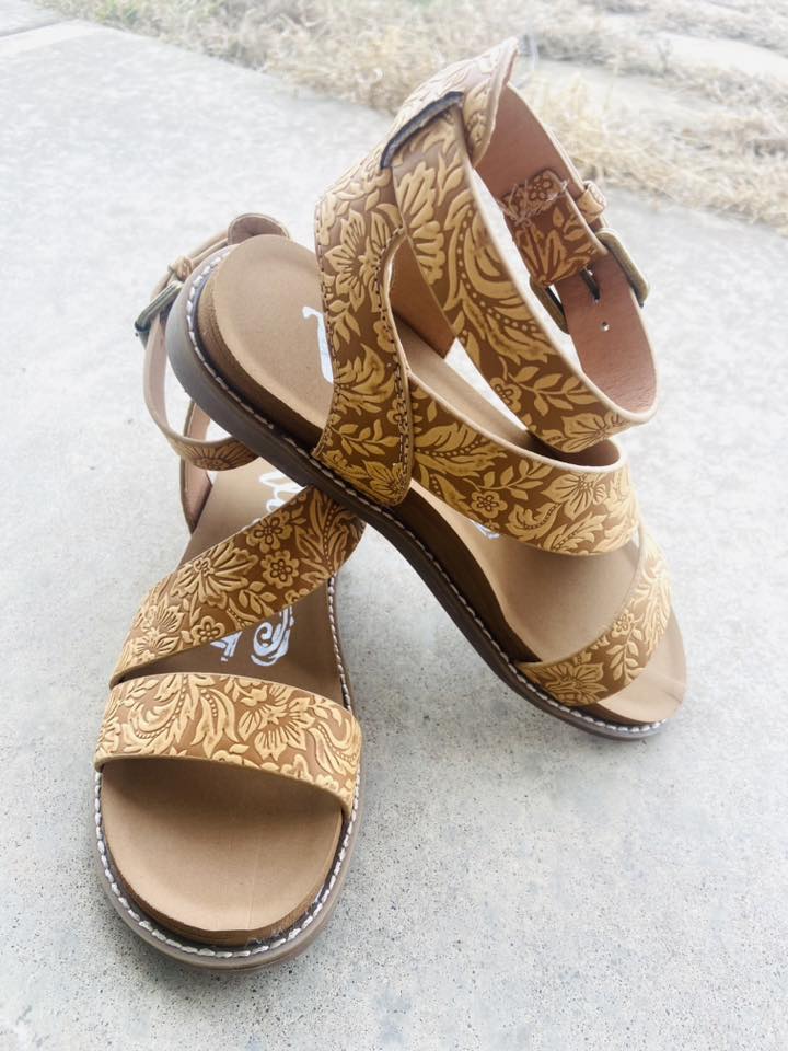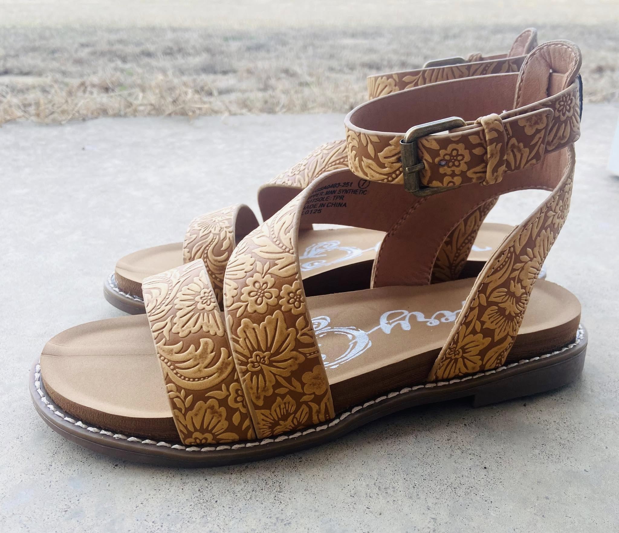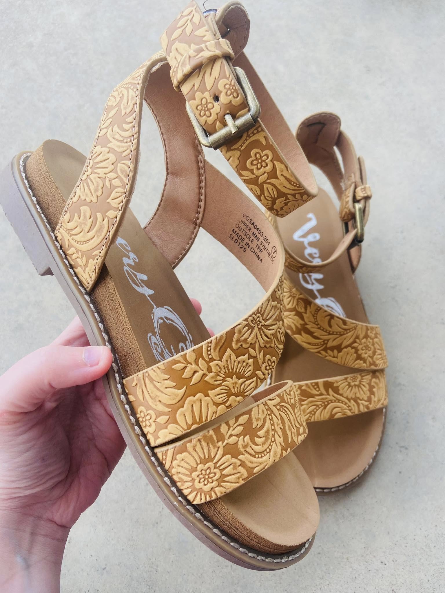 Step into style and comfort with Vanna's tan Tooled Western Sandals. Perfect for spring and summer, these sandals combine the classic western look with a cushioned sole for all-day wear. Made with faux leather, they are also true to size for the perfect fit. Elevate your footwear game with these comfy and stylish sandals.