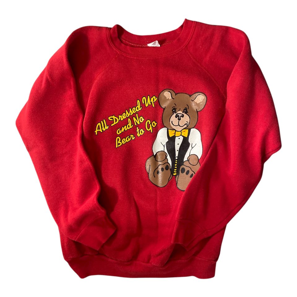 This Vintage BEAR Sweatshirt in size small is adorable and ready for fun — all dressed up with no bear to go! Its playful design makes it a cozy favorite for those who love a touch of whimsy in their wardrobe. Perfect for everyday adventures with a smile.