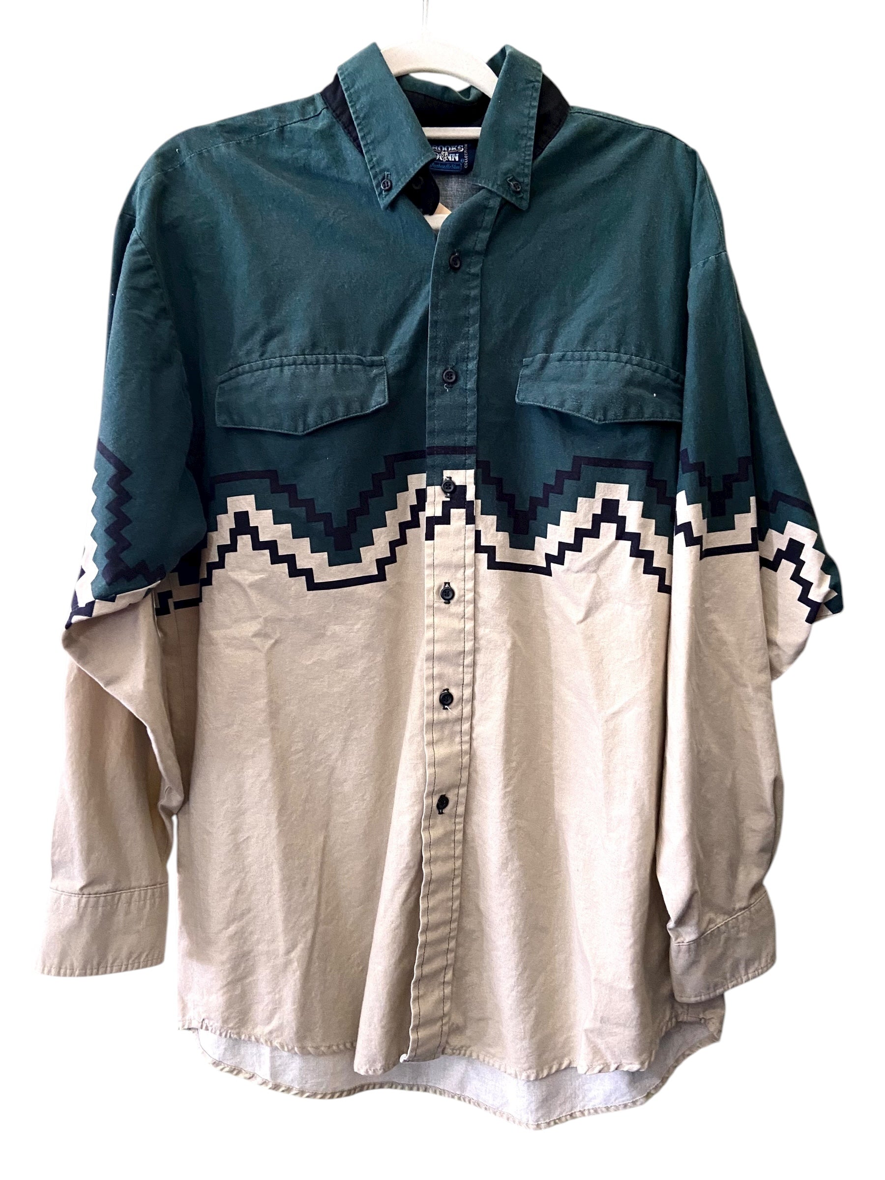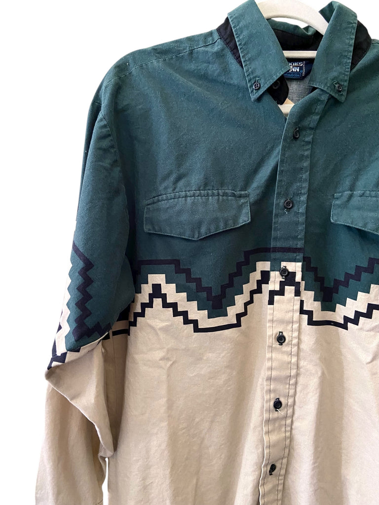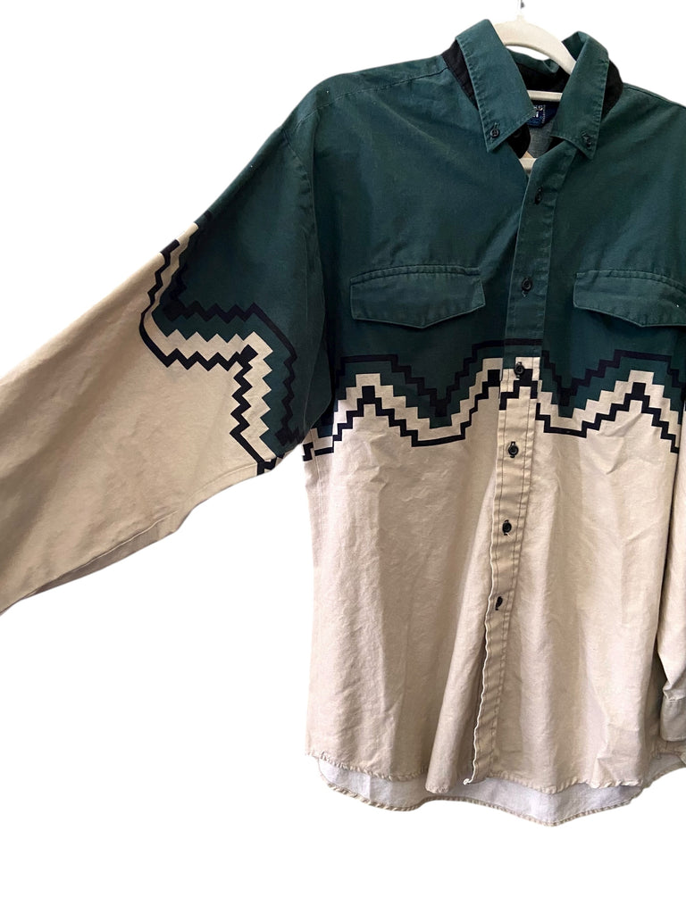 Vintage Brooks & Dunn Panhandle Slim Green/White Western Shirt *Size 16-34