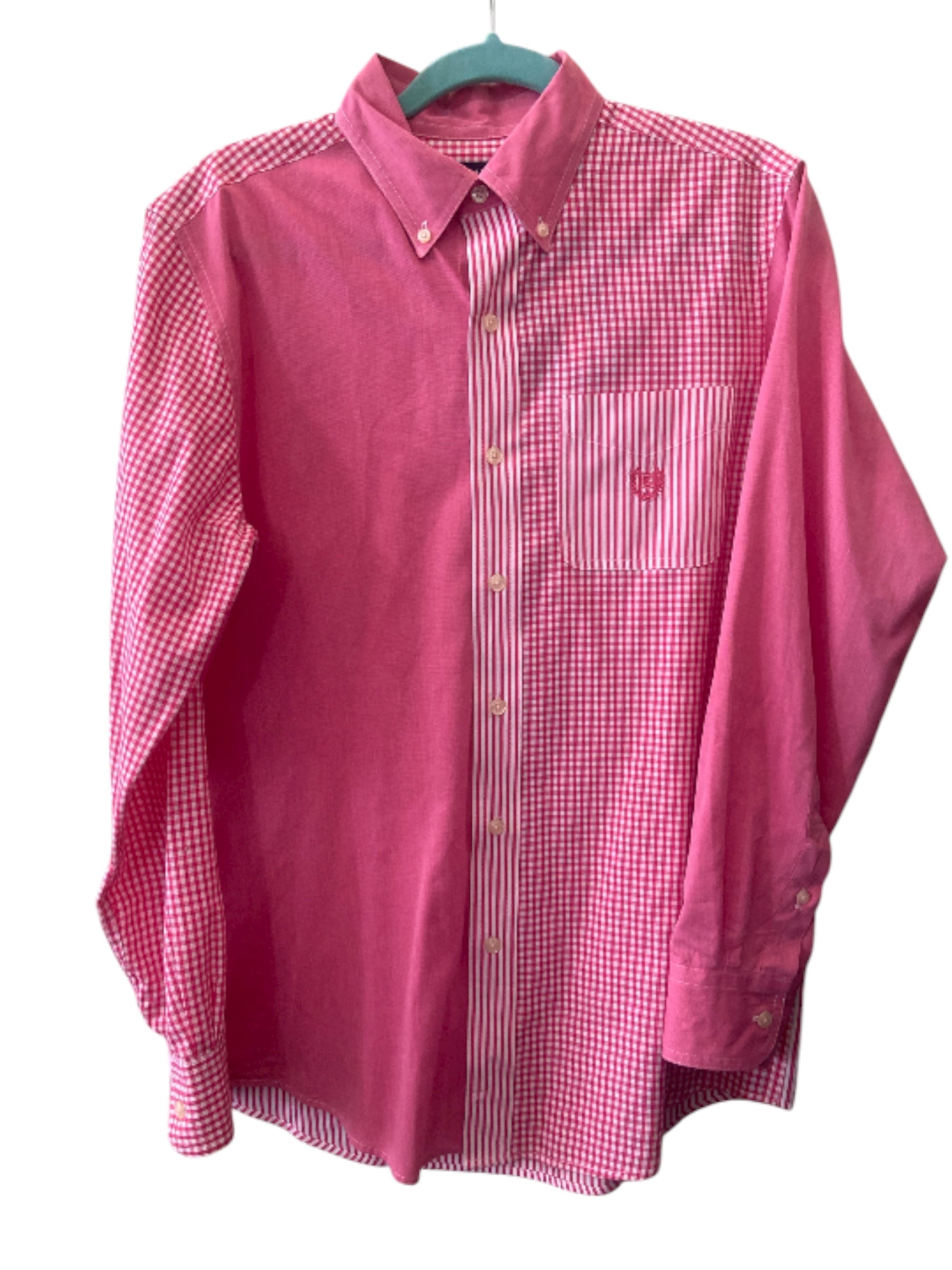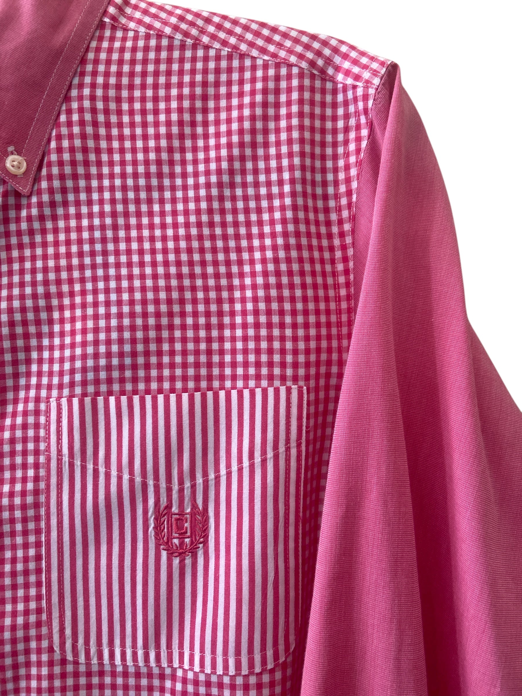 Vintage Chap's Men's Shirt Pink/White Gingham And Striped *Size Small