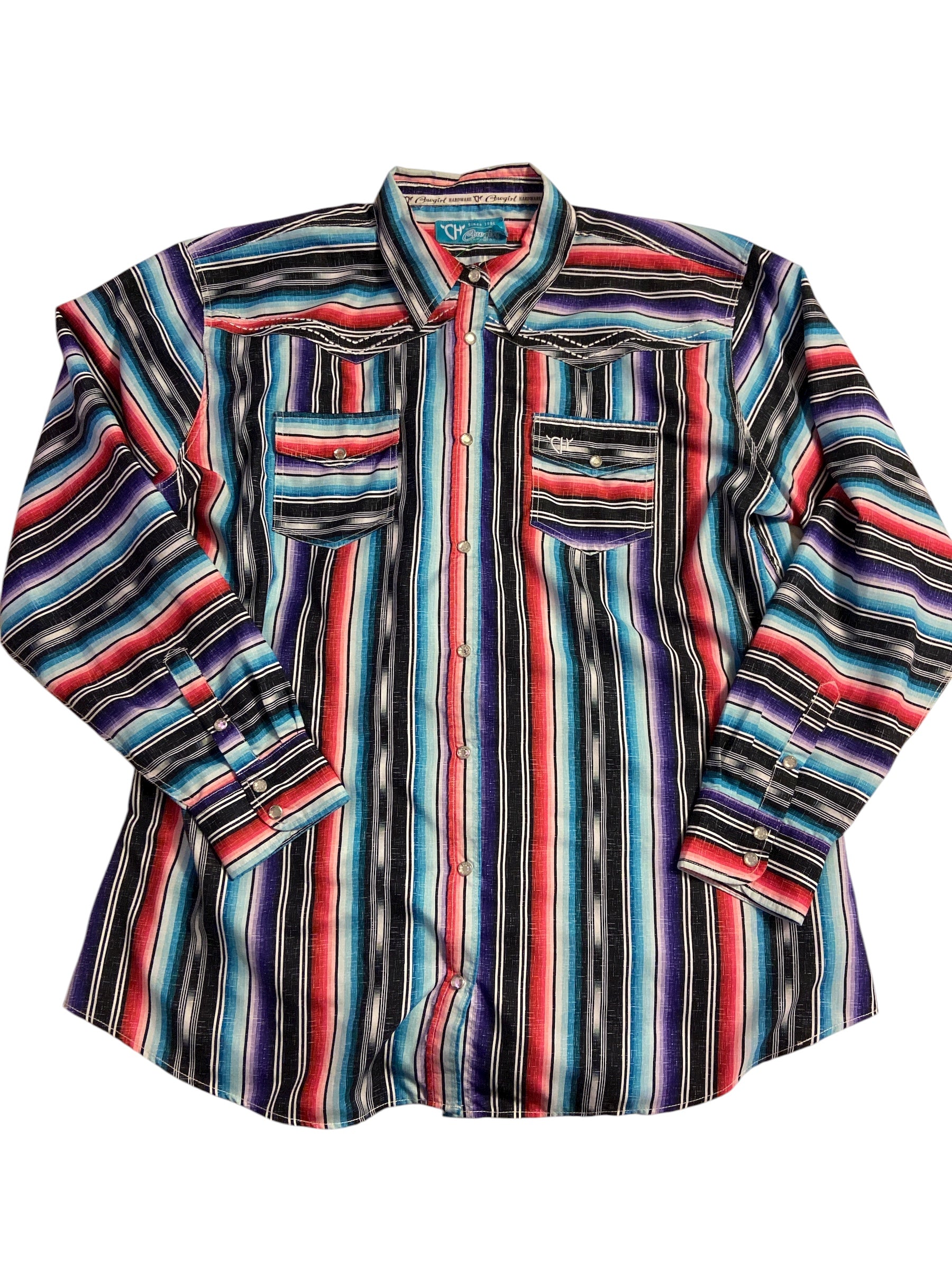 Vintage Cowgirl Hardware Serape Pearl Snap Western Women's Shirt Size XXL