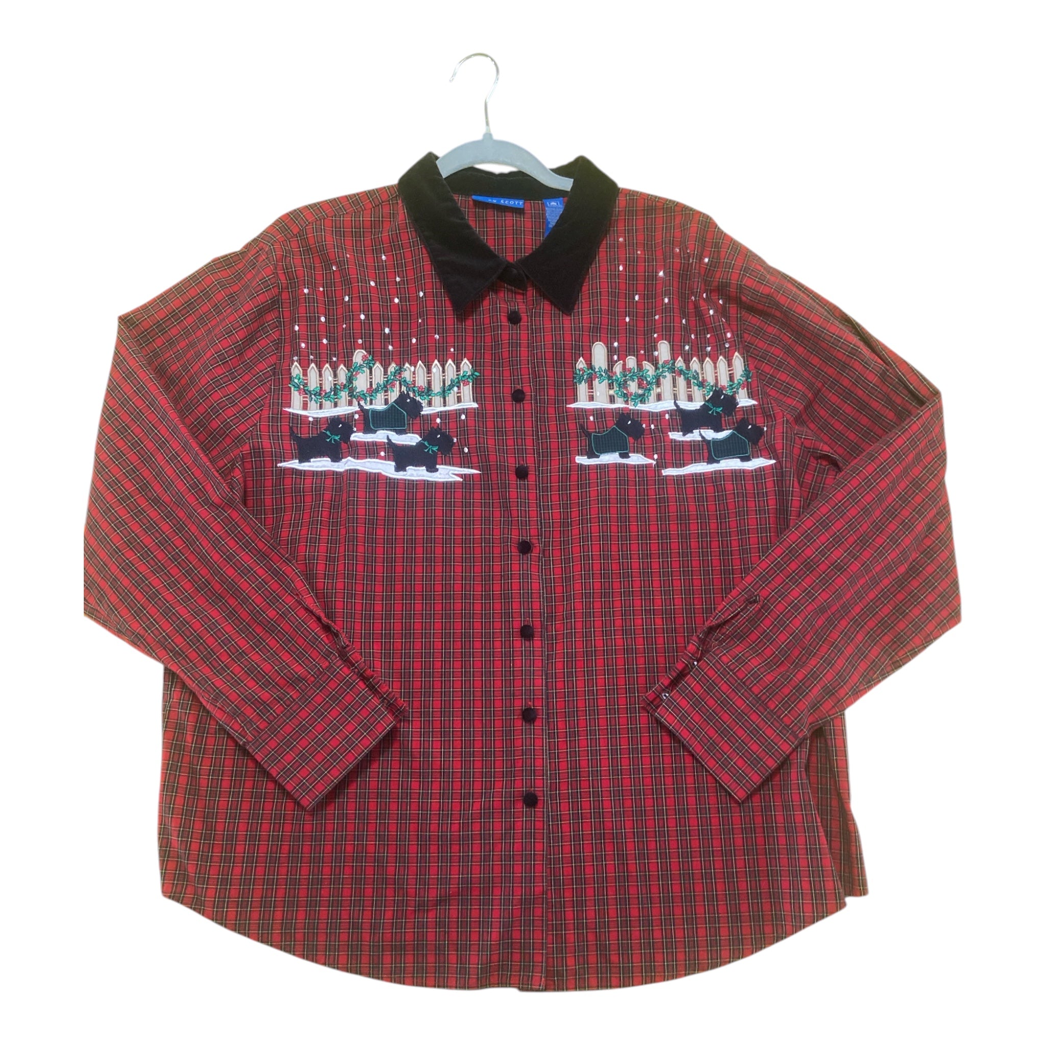 Vintage Karen Scott Scotty Dogs Christmas Button Up Shirt *Size XL