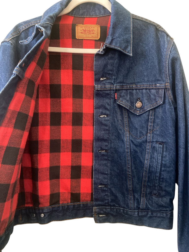 Vintage Levi's Men's Denim Jean Jacket Buffalo Plaid Inside Lining Made In The USA *Size 40