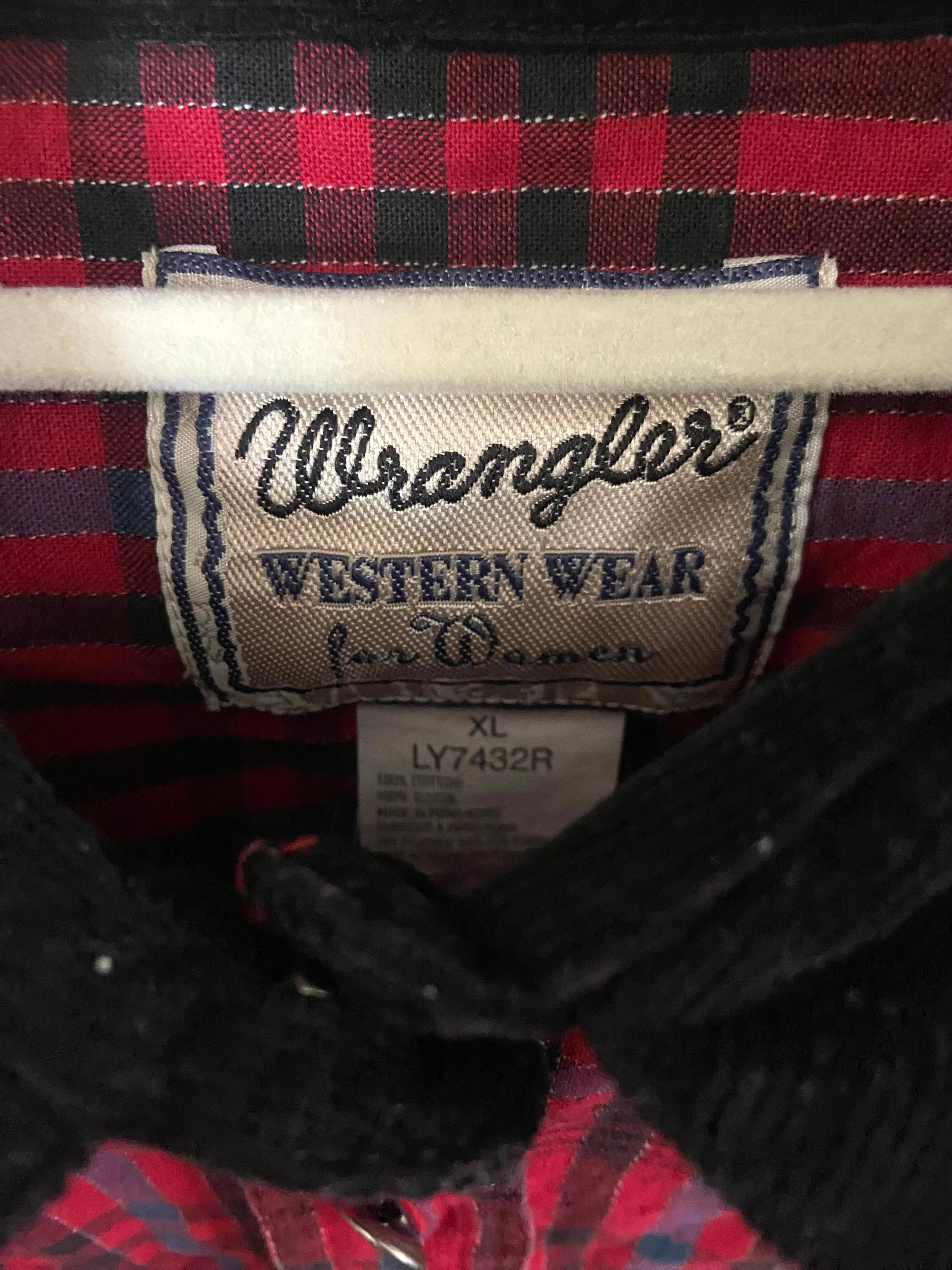 Score this vintage Wrangler red plaid shirt for effortless Western charm with a feminine edge. The fitted silhouette flatters without clinging, while the bold red and black plaid pattern brings instant personality to any outfit. Heads up: this women's XL runs small and fits closer to a large, making it ideal if you love a snug, tailored vibe. Built from sturdy cotton that softens beautifully over time, it's the kind of piece that pairs perfectly with everything from denim to dresses. A timeless staple that proves vintage is always in style.