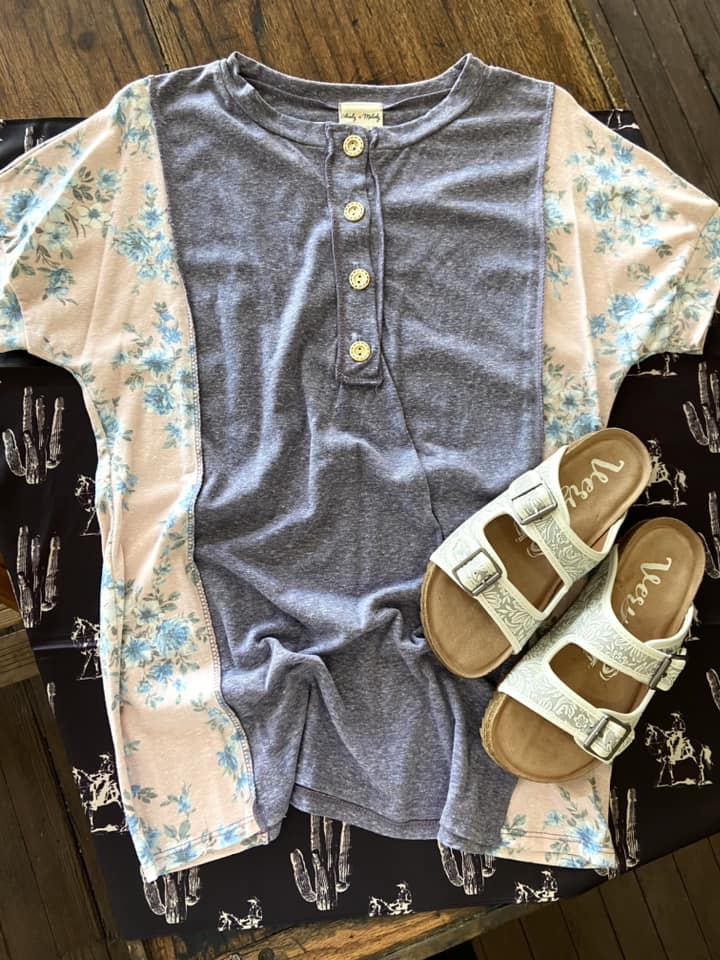 Refresh your wardrobe with Wanda's Floral Denim + Blush Women's Top. This soft and pretty top is perfect for spring and summer, adding a touch of feminine charm to any outfit. Elevate your style and feel confident with this must-have piece!