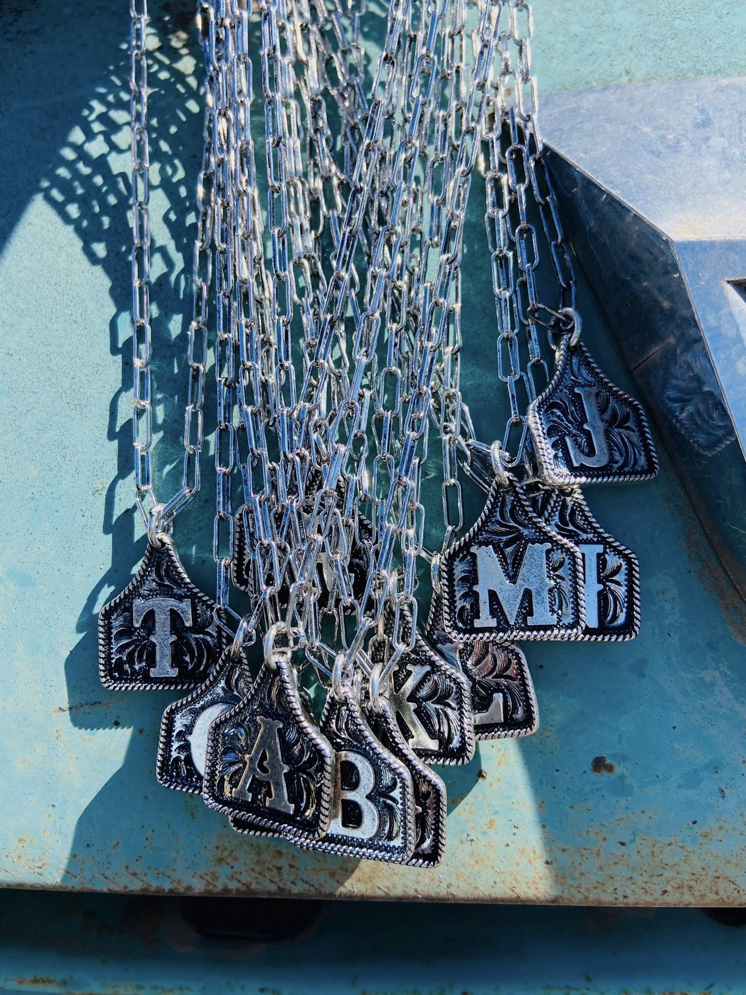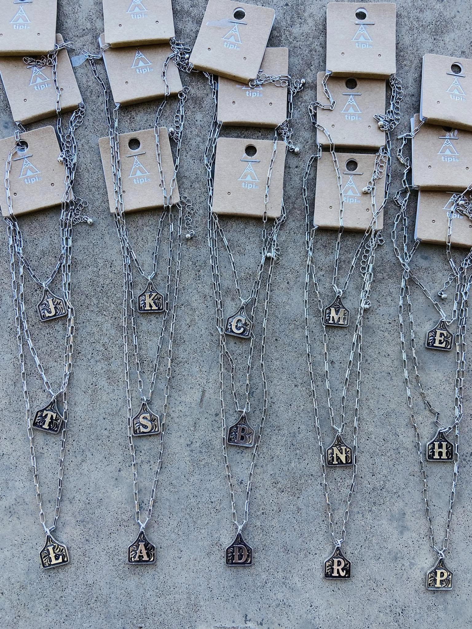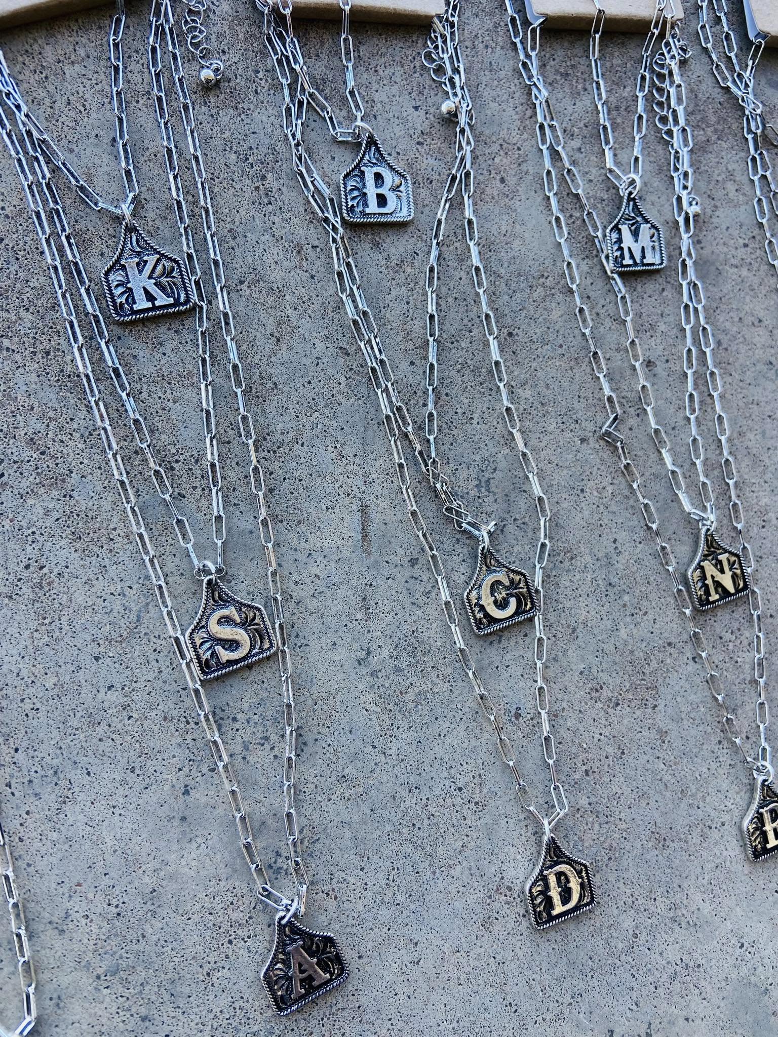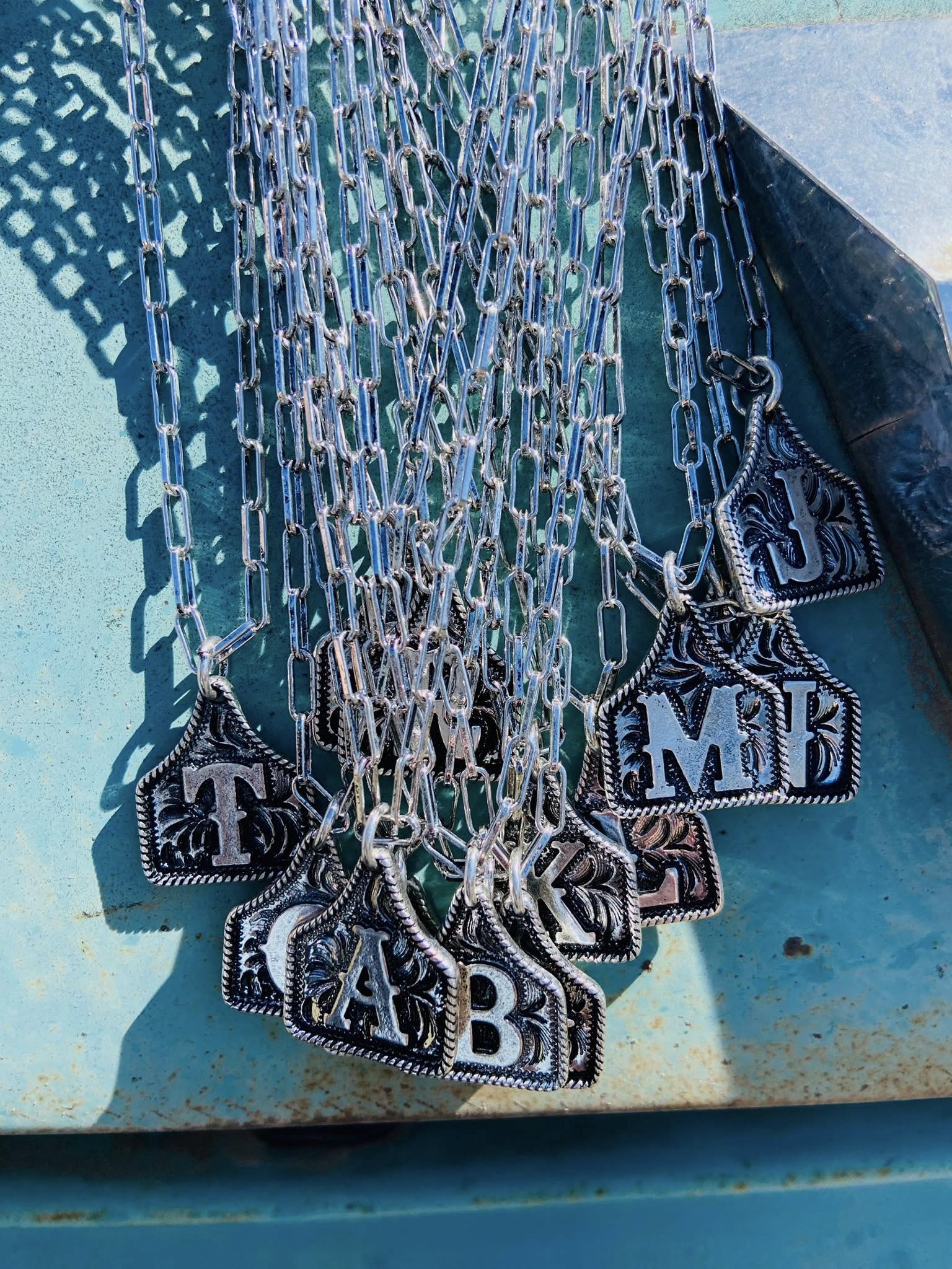 Western Cattle Tag Initial Necklace