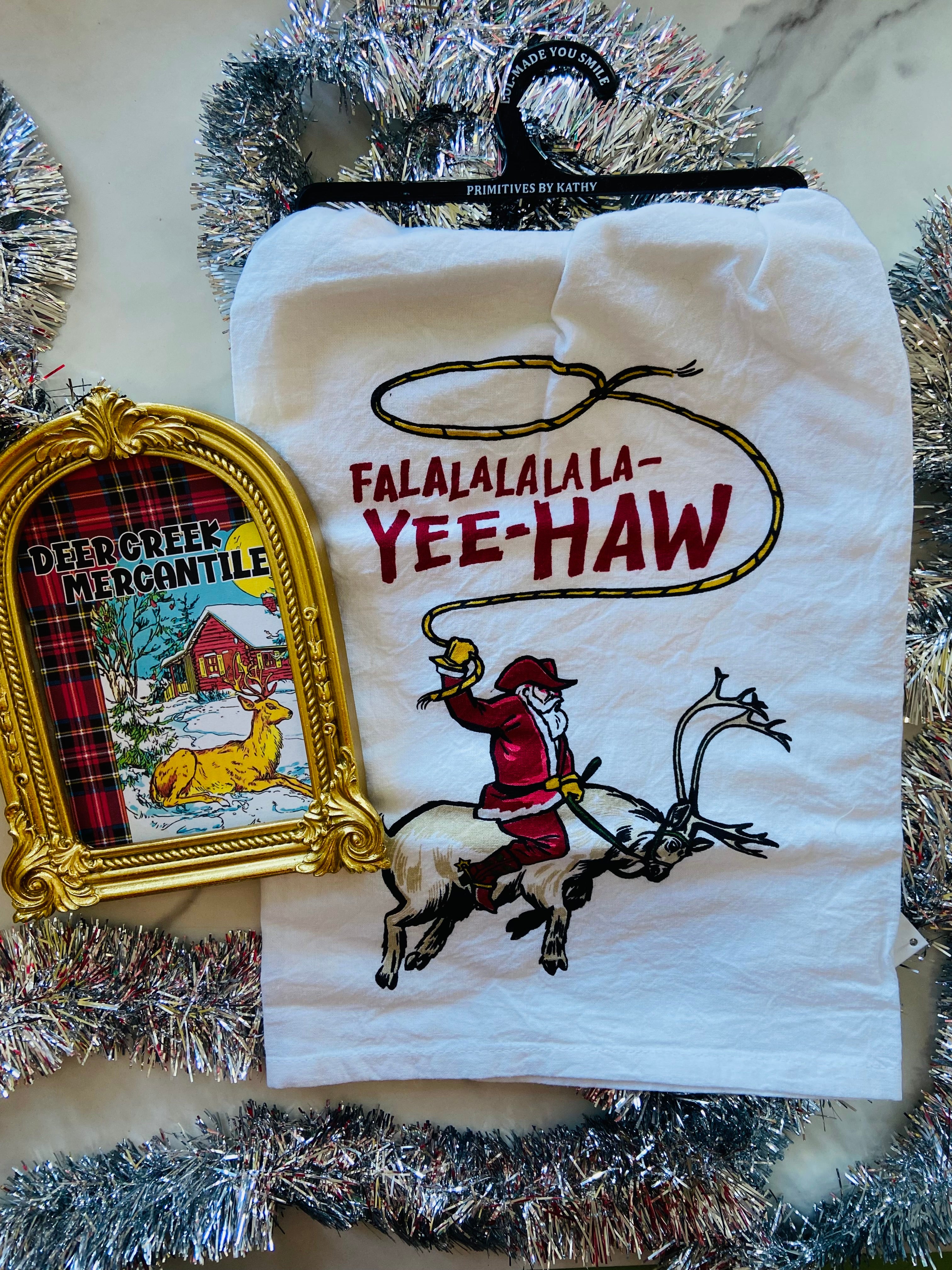 Yeehaw Cowboy Christmas Kitchen Towel